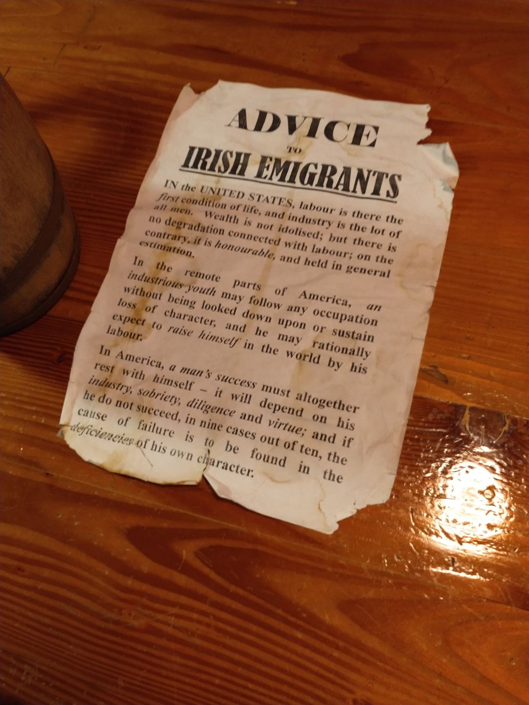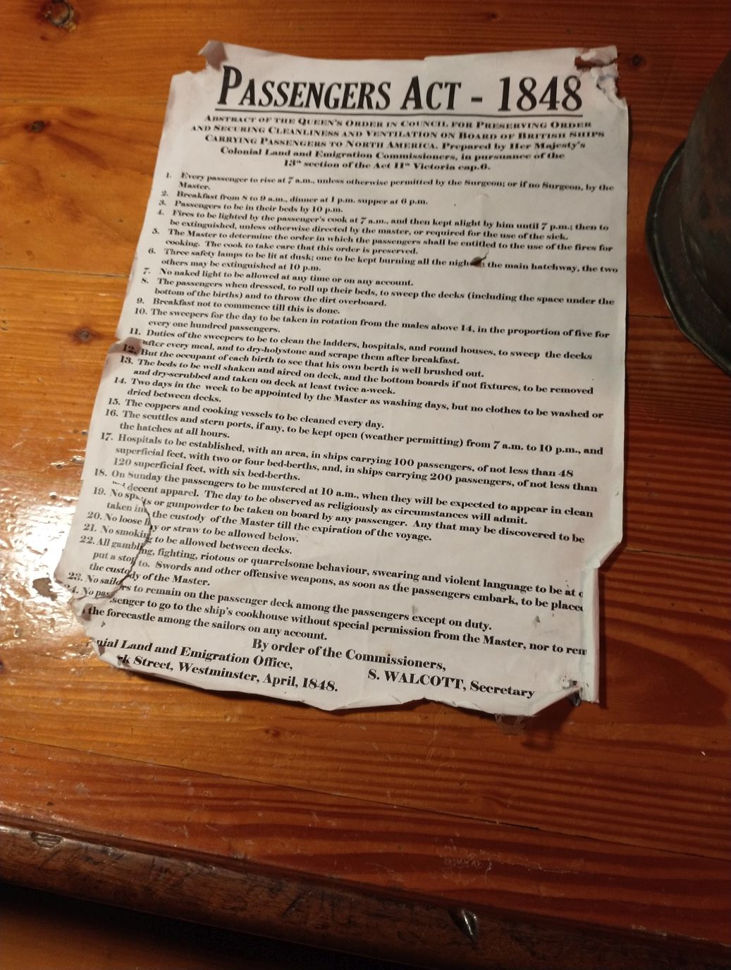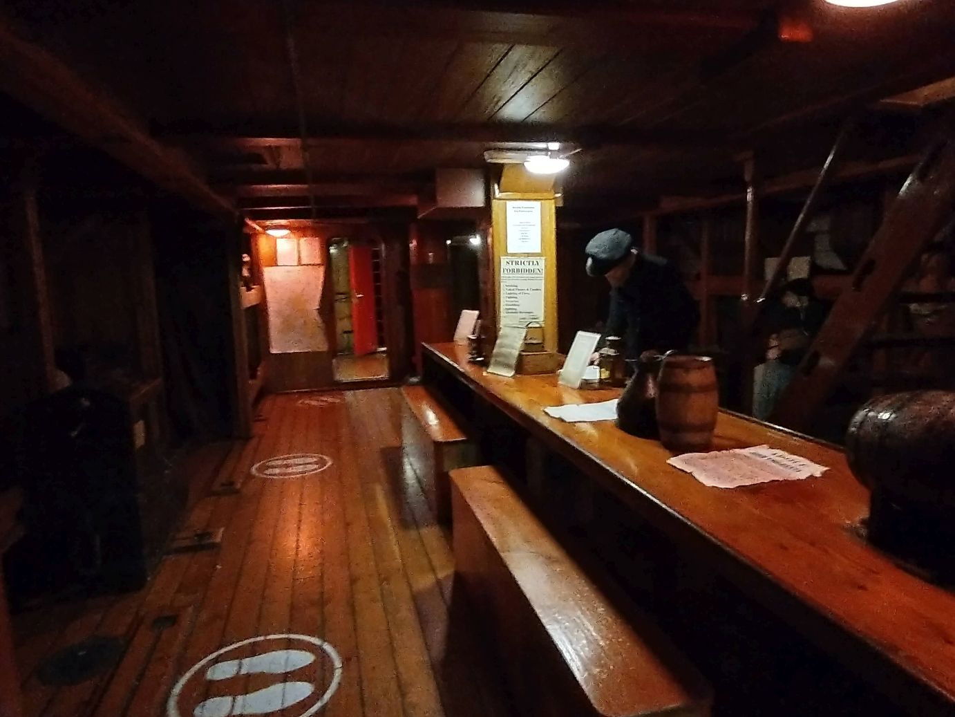 Then it is below deck to where everyone bunked and spent their time. Oh dear me. 250 people? Did I mention I’m also claustrophobic? Well, anyhow, this was an experience. All that aside, they do a great job of really making you feel what it would be like down here with life-like mannequins of the people who were on board at any given time. There are also notices tacked to the dining table and the support poles with rules and advice for emigrating. There is even a list of all the voyages and how many passengers were on each. All very fascinating.