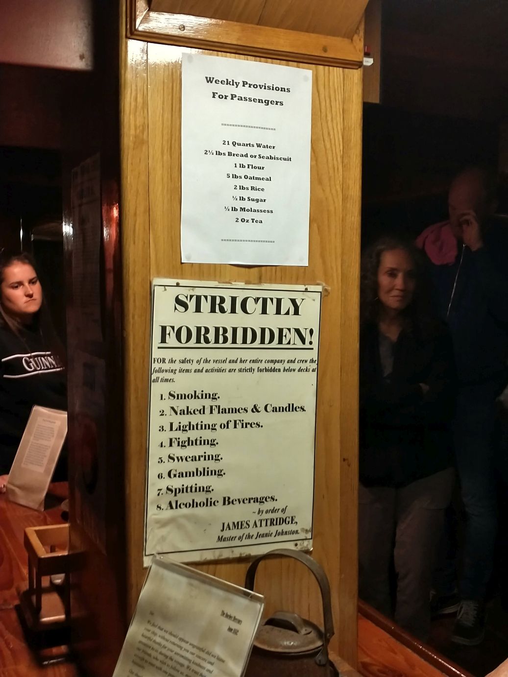 The tour begins on the deck of the ship where we get a lesson in ocean going seamanship from the 1800s. You really get a feel for just how small and how vulnerable these ships were – to ply the Atlantic ocean all those years ago with so many people aboard. Yeah, I’m already seasick just thinking about it.