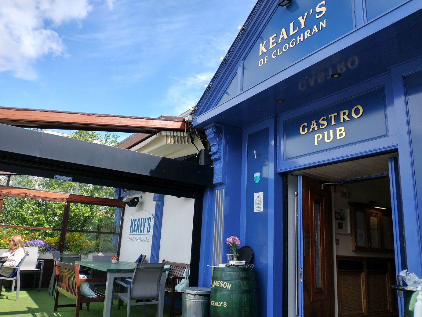 We’re too early to check into the hotel, but not too early for lunch, so we give our bags to the desk clerk and head out to Kealy’s Gastropub as recommended by our driver. About a 20 minute walk, literally right up past the airport, we arrive at the deep blue painted pub a little after noon – perfect timing for lunch. They even have a nice little space out back where we can eat outside. Lovely.