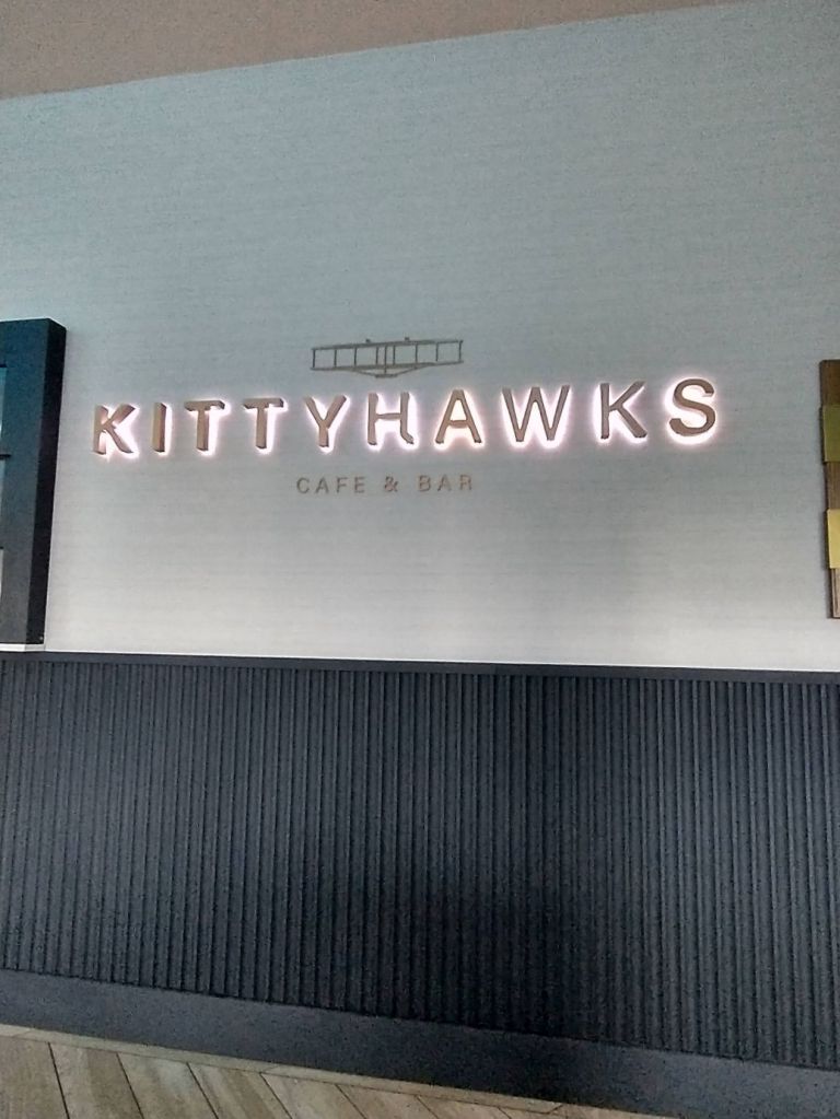 Whiling away the time after we check in, we eventually make our way down to the Mayfly restaurant – next to the Kitty Hawks bar and cafe mind you, that wasn’t open, but was the same as the restaurant? I know, confusing, we never did figure out where we ate, but we did have dinner in a hugely noisy bar/restaurant type area in the hotel! Oddly enough, this must have been the local hot spot, because the large group of noisy people all left in cars when they were done.