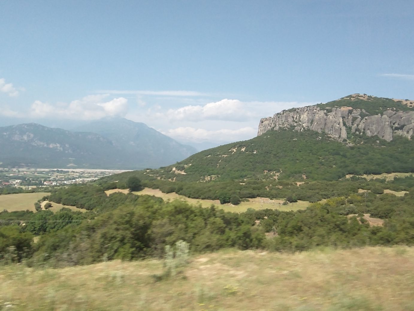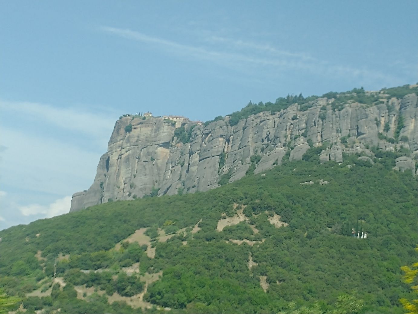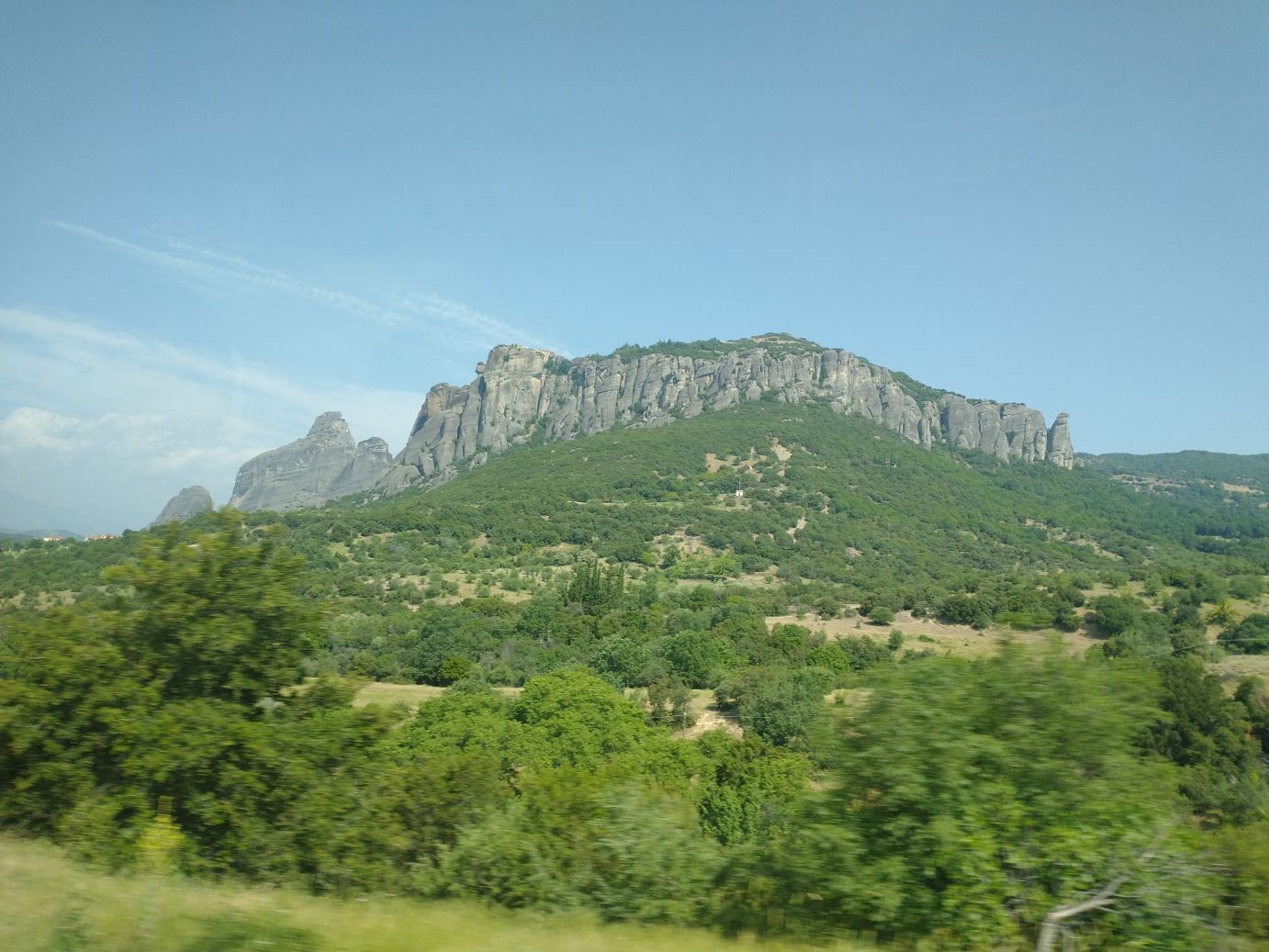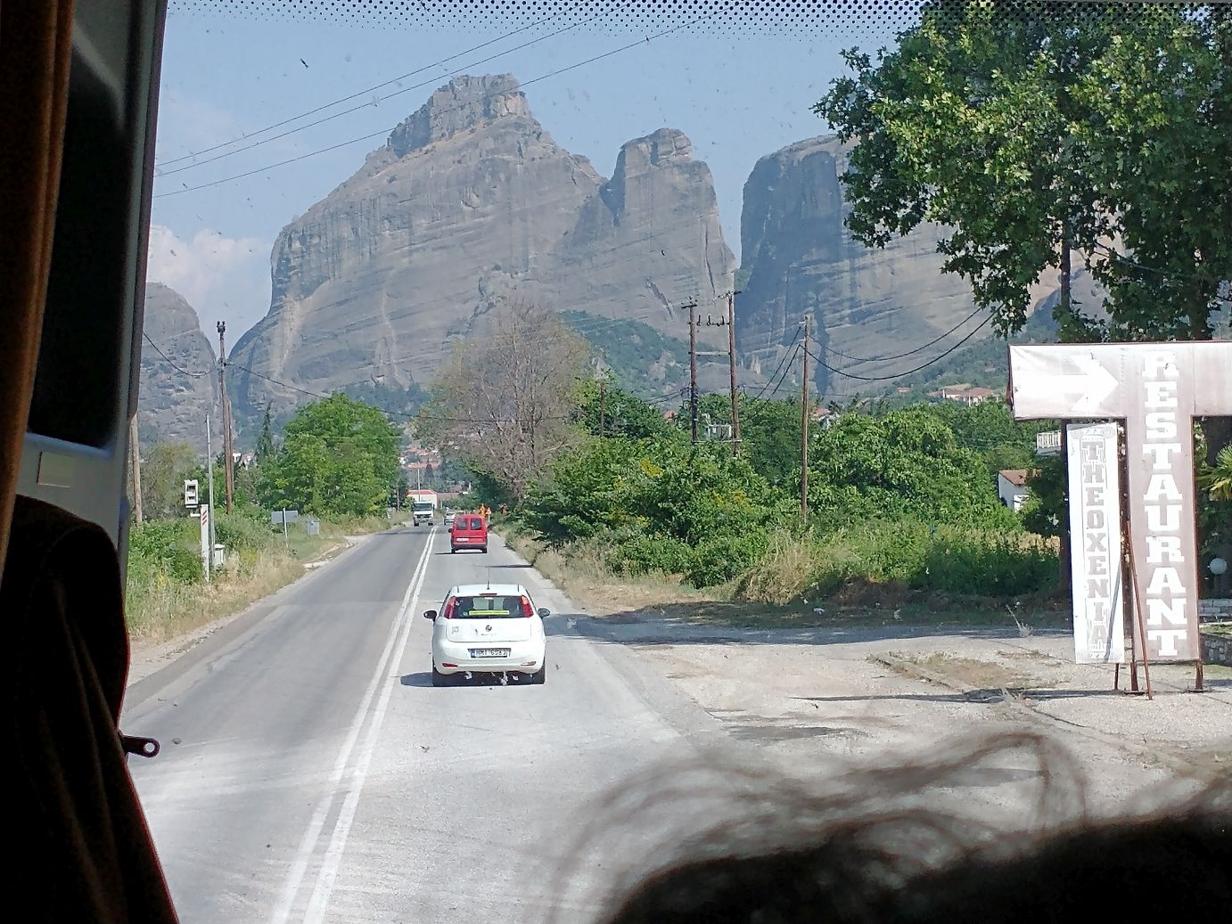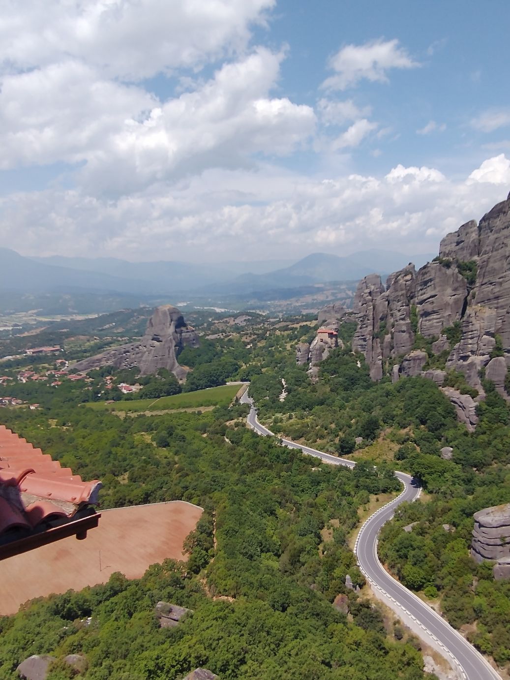 We meet and make our way to the bus at the appropriate time, snagging decent seats little ways back from the front. Our tour guide, Giorgos, is great. He’s totally into Greek mythology so as we drive along, he regales us with tons of stories and legends – trying his best to come back to the actual facts of the monasteries. As we gaze out at the gorgeous scenery along the route, as the peaks start to appear, we learn interesting new facts about Greece – almost 75% of the country is covered by mountains, it is the 2nd most mountainous country in Europe (had no idea!) and there are 18 ski areas around the country. News to us!