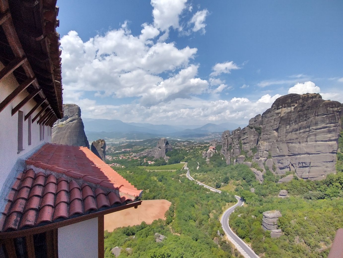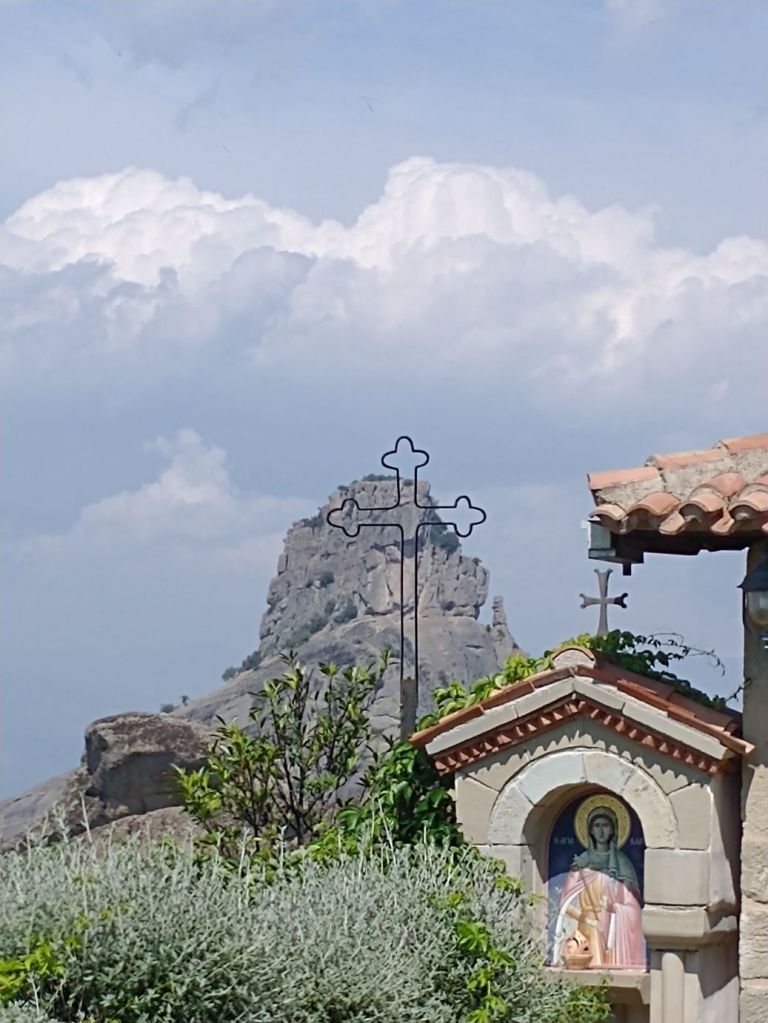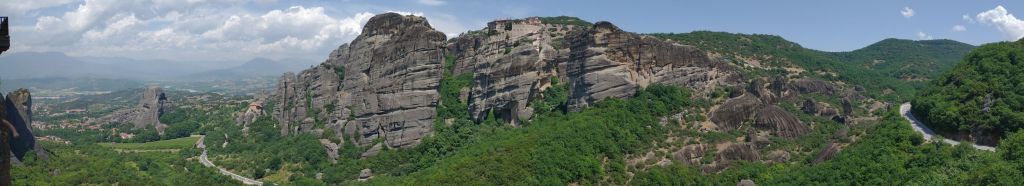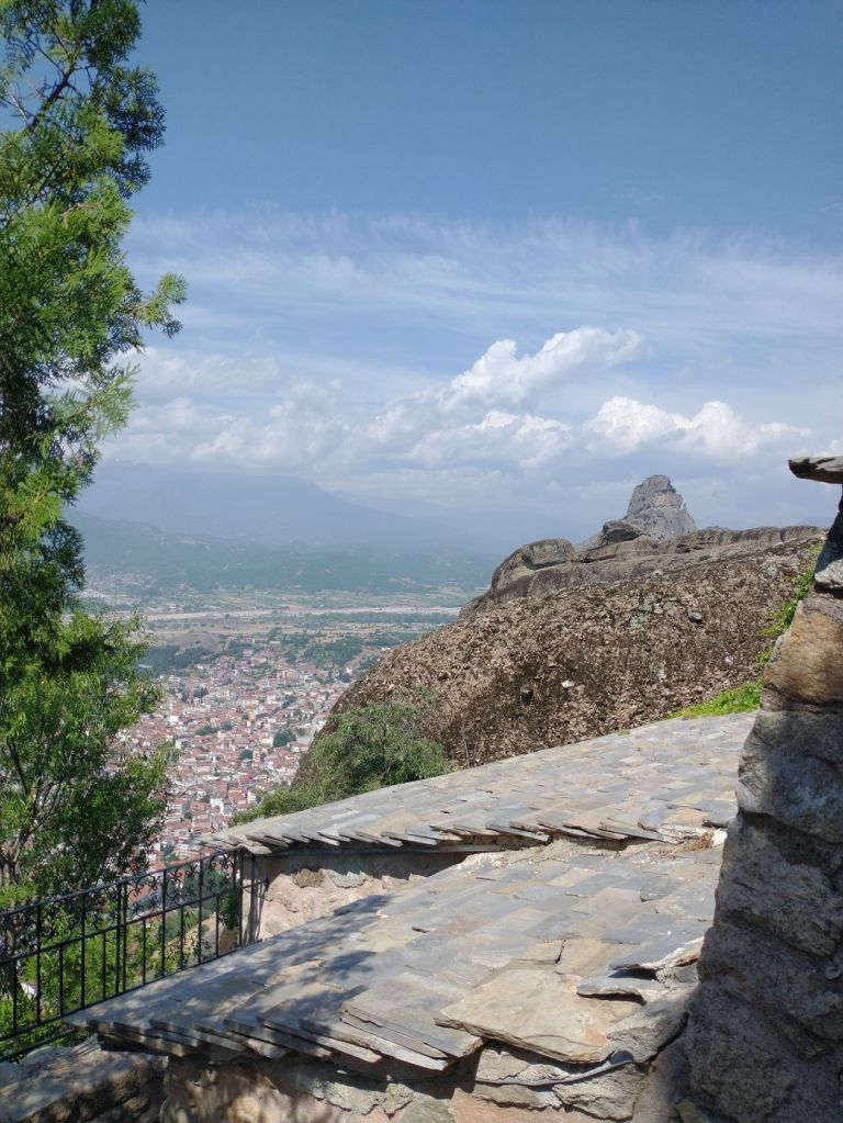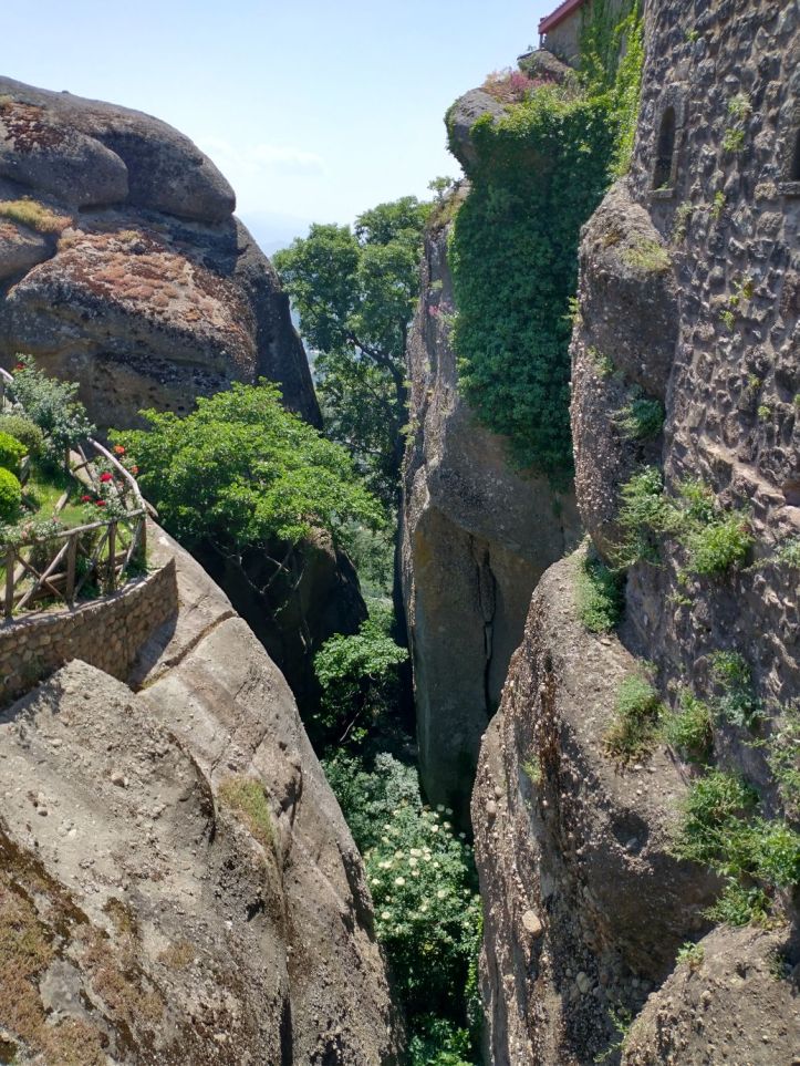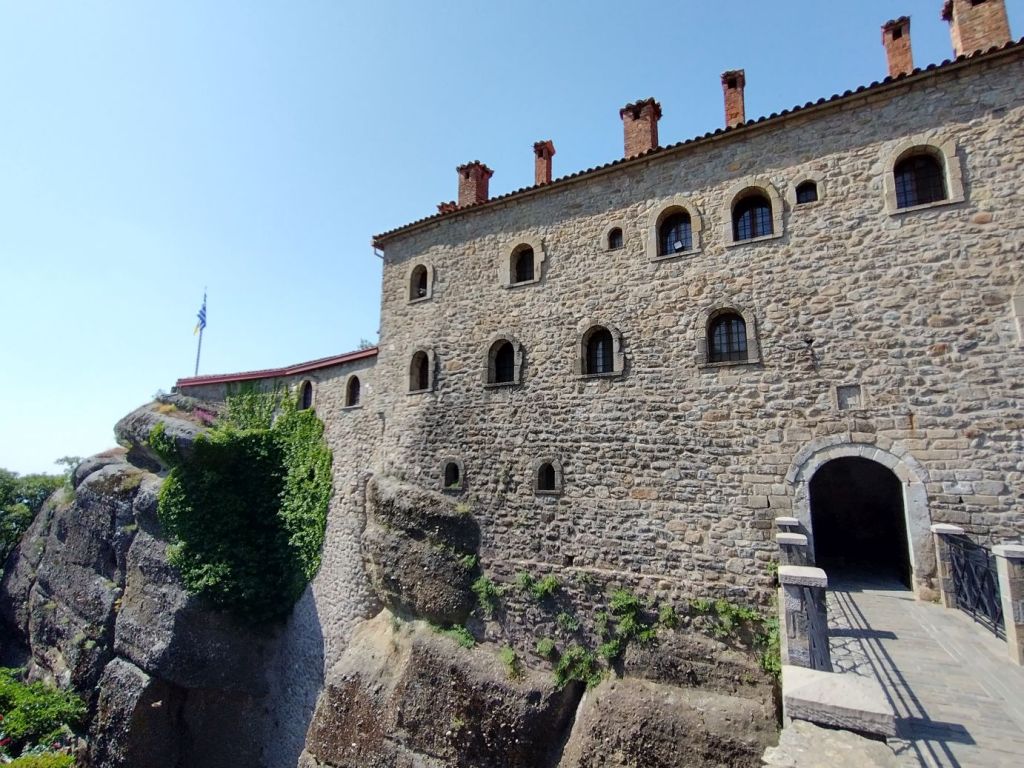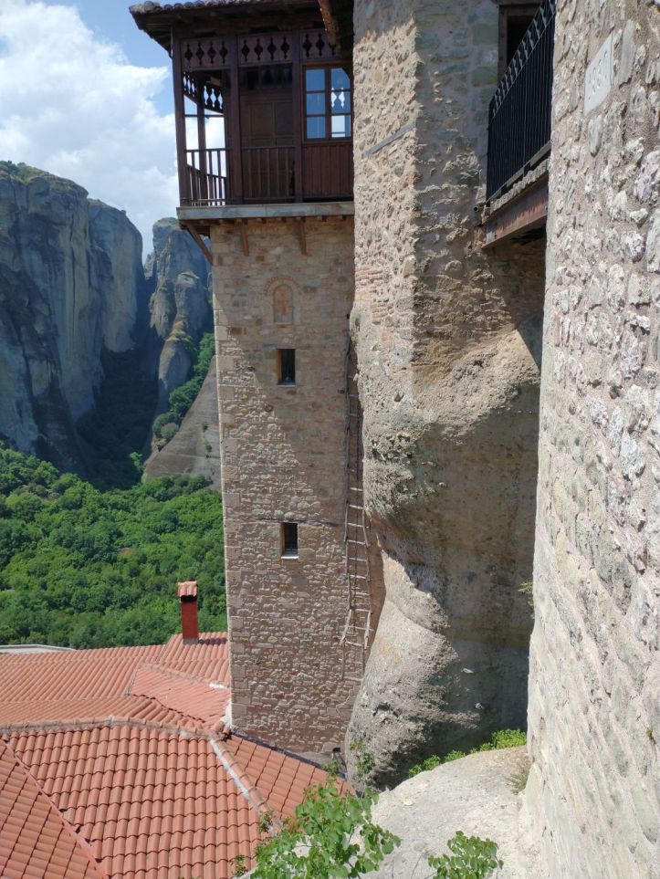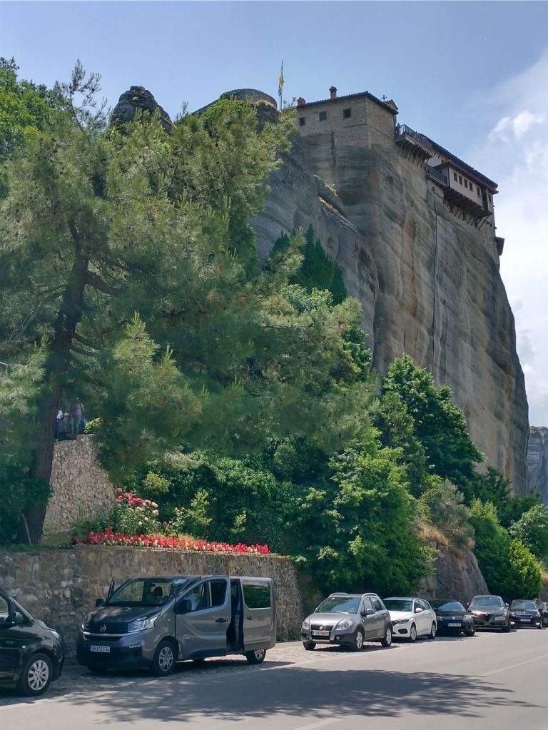 Hitting the road once more, we are just immersed in craggy cliffs and crazy Monasteries perched atop them. We can see the Great Meteoron Holy Monastery of the Transfiguration of the Saviour – the biggest of them all, set on highest peak, the Holy Monastery of Saint Nicholas Anapafsas at Meteora – a little narrow building sticking straight up on an equally narrow stalagmite, and finally the Monastery of Varlaam which is below and across from the Monastery of Rousanos – St. Barbara, our final monastery stop of the day.