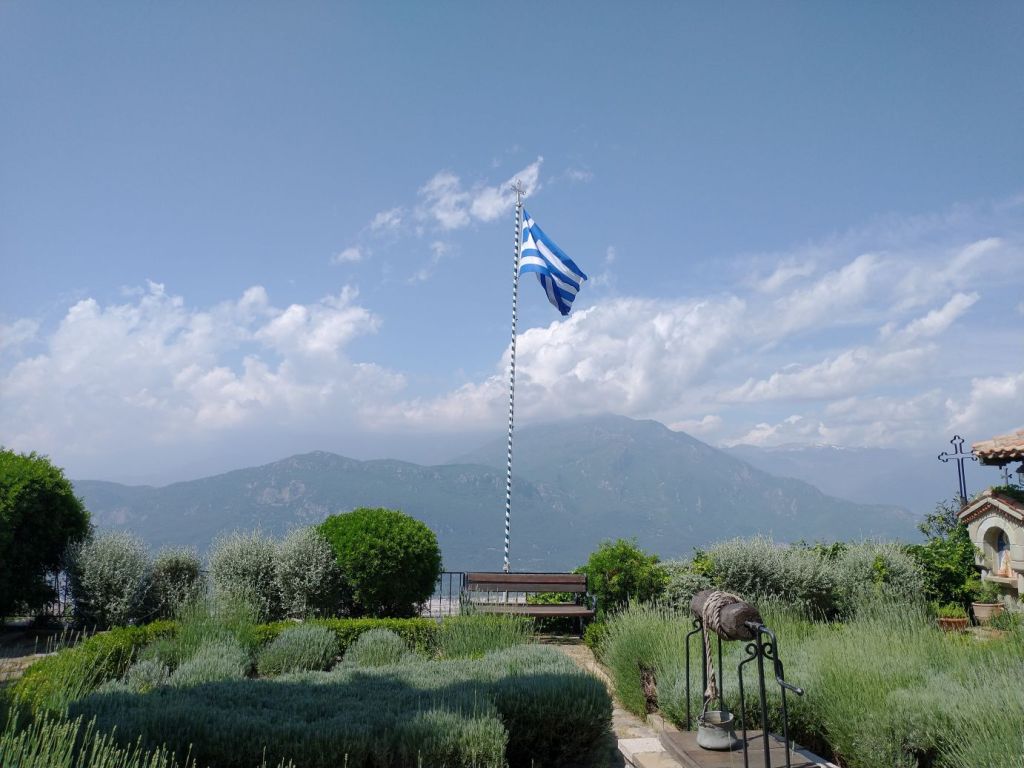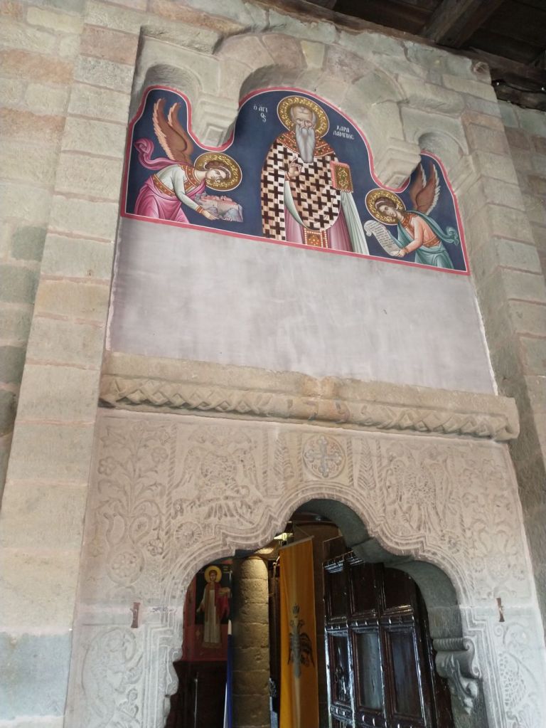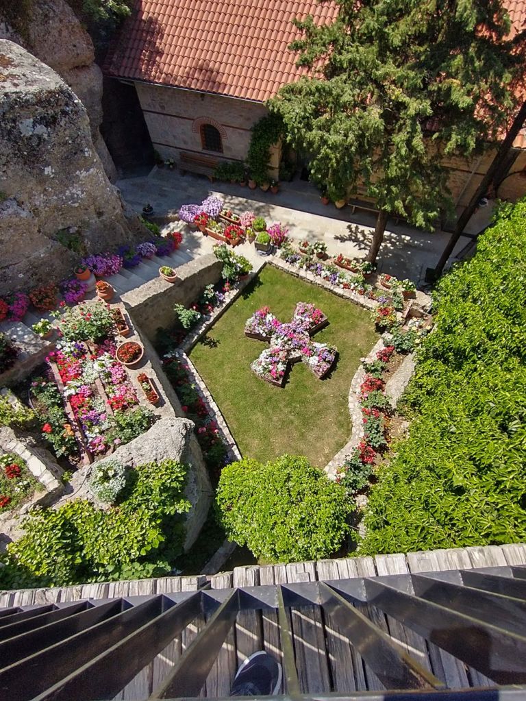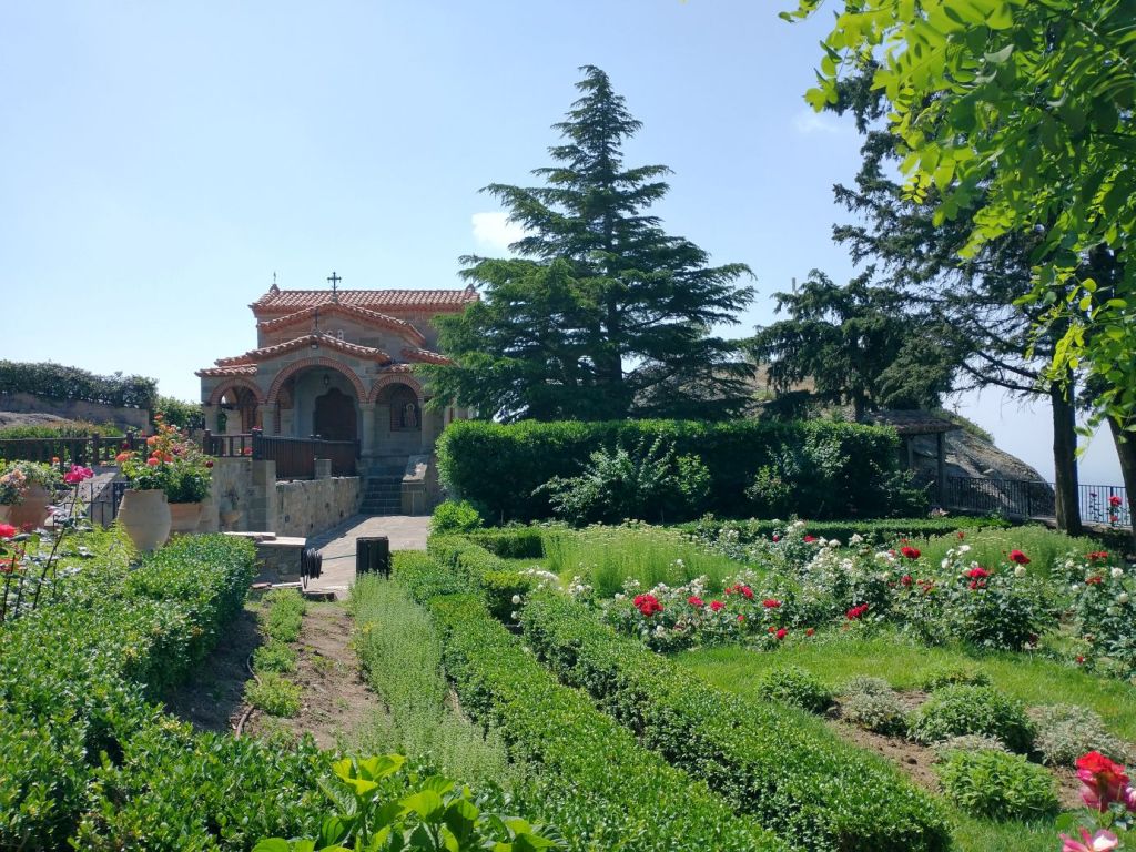 No pictures are allowed inside the actual monastery, so after walking through the chapel and viewing the iconostasis of the Last Supper, we head outside to the gorgeous garden, past the 15th Century church for more incredible views across the valley spread out below.