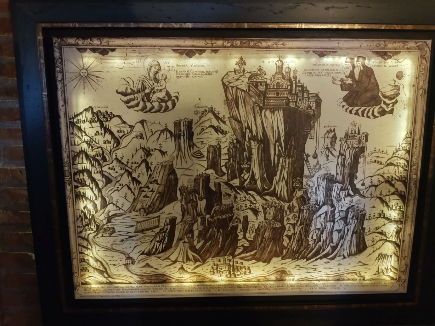 Inside the monastery, which is now a nunnery, there is a fabulous hand drawn visual map of the area, showing all the different monasteries atop their respective cliffs, giving us all a good perspective on the sheer size of this area. Also, inside the chapel are incredible 16th Century frescoes, which I will cop to taking sneaky pictures of while nobody was looking. Got away with it – they aren’t the best photos, but still….nobody came after me!