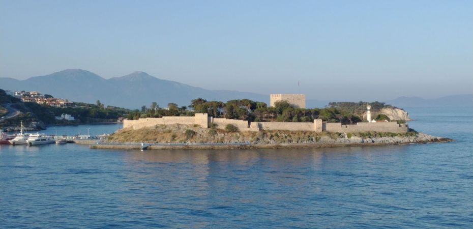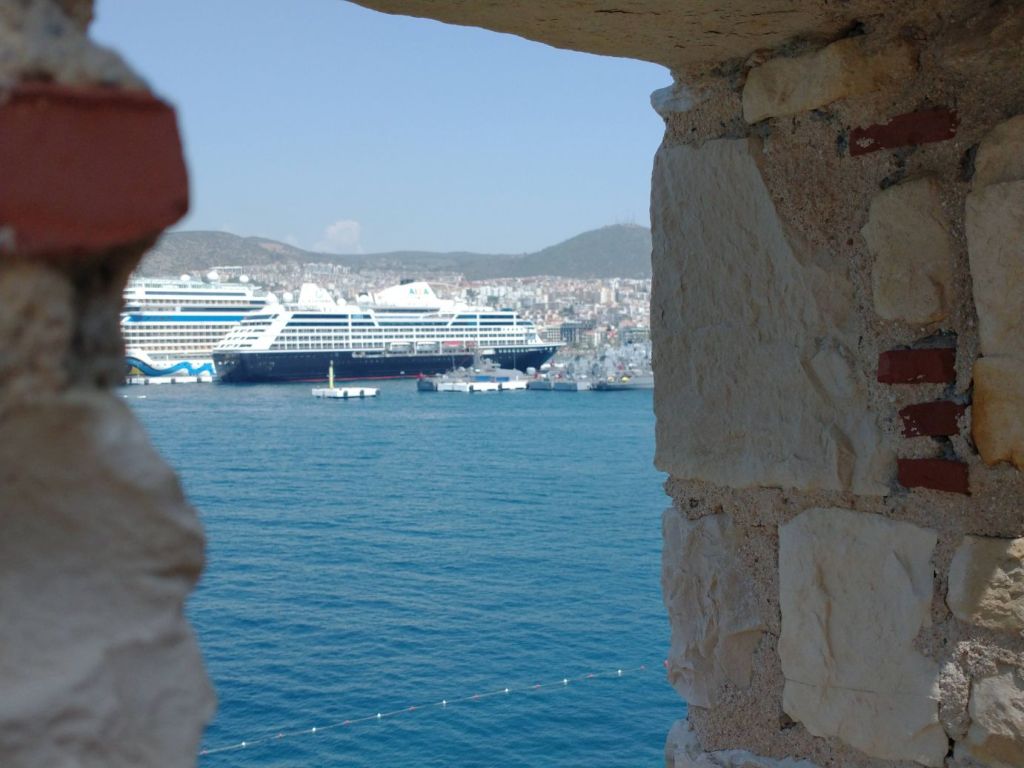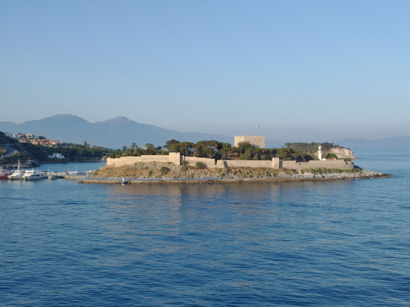Continuing on, we finally made our way over to the castle on Guvercinada (Pigeon Island) that we have gazed upon innumerable times from innumerable ships – but have never managed to visit. Today is our day. It is a neat fortification from the 16th Century, and while we can’t get inside the buildings, we can walk around the walls and the main fortress and tower. The trees provide lovely shade, making it a pleasant walk around the little island castle.