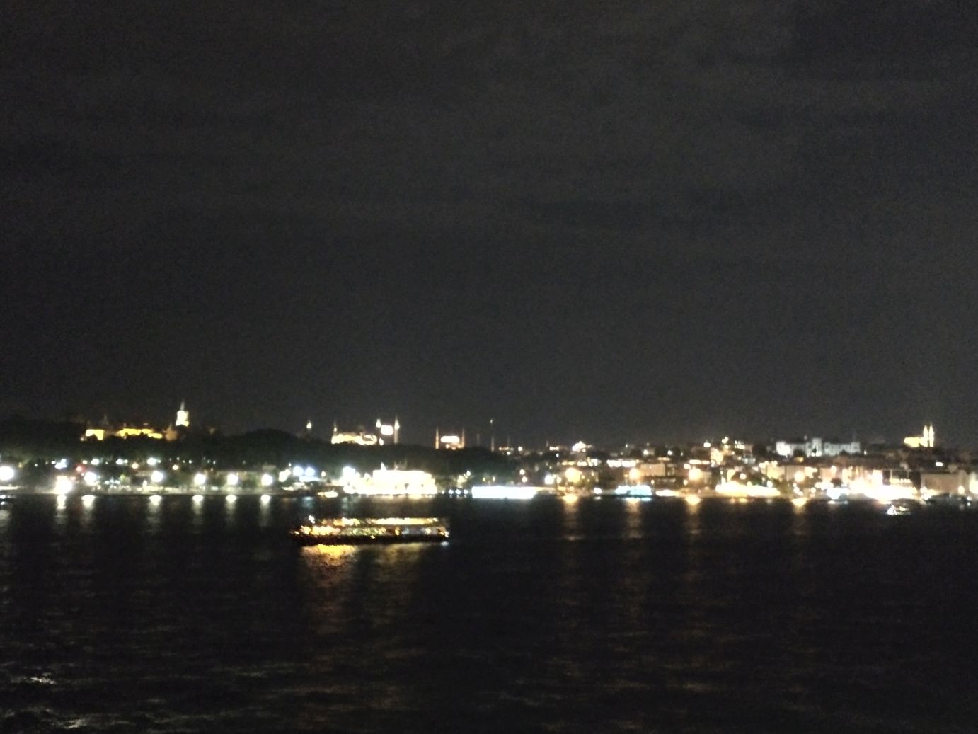 And of course, afterward? Where do we head? Yep, straight back to the balcony to gaze out at the lights of Istanbul and watch the teeming masses down below on the promenade. Wow. This place is hoppin’. Fortunately, the concert in the square is over and there isn’t a lot of loud music and our balcony doors are pretty sound proof anyway, so we’re not worried about being kept up. Except maybe by curiosity sitting here all night watching everyone outdoors!