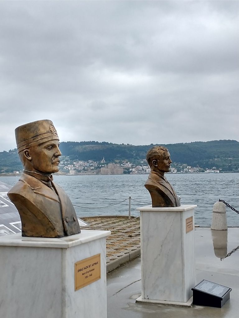 We spend a good amount of time wandering around the grounds here, looking at the different memorials, the views across the Dardanelle Strait and the old military weaponry strewn about the park like courtyard, including the net huge anchors that held the steel nets across the strait so that Allied submarines couldn’t pass through during the battles.
