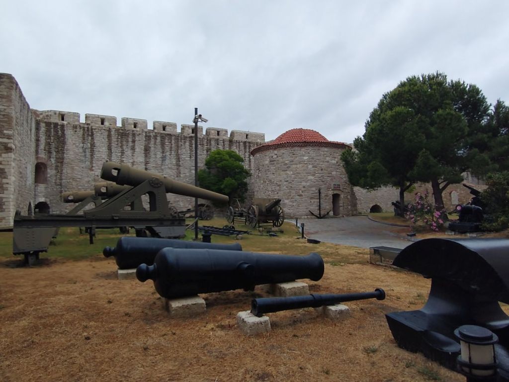 The rain starts to slacken, and we make our way out to walk the 2 or 3 blocks to the museum. The rest of the town may be sleepy, but this place is rocking. There are tons of people here -mostly kids as it seems there are a couple of large groups of local kids here – on tour maybe? Don’t know – it’s a little odd on a Sunday, but since the museum is inside the large Cimenlik Castle grounds, it is easy to avoid the masses.