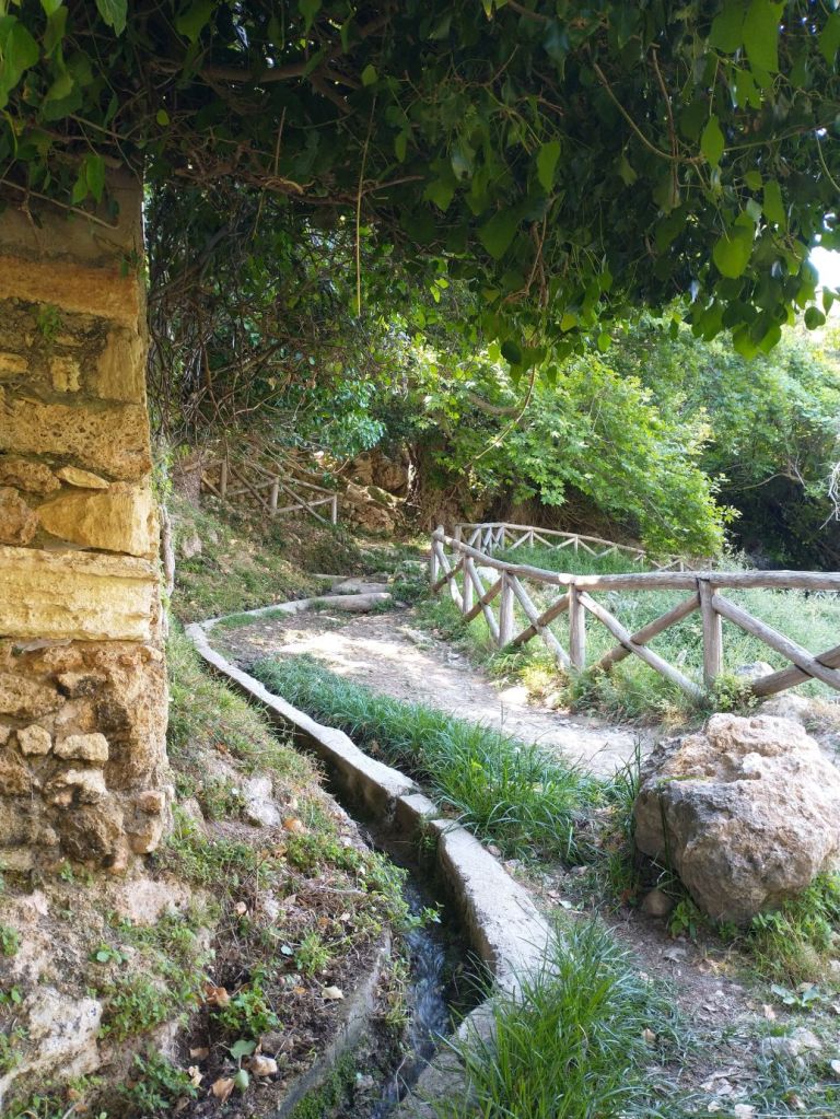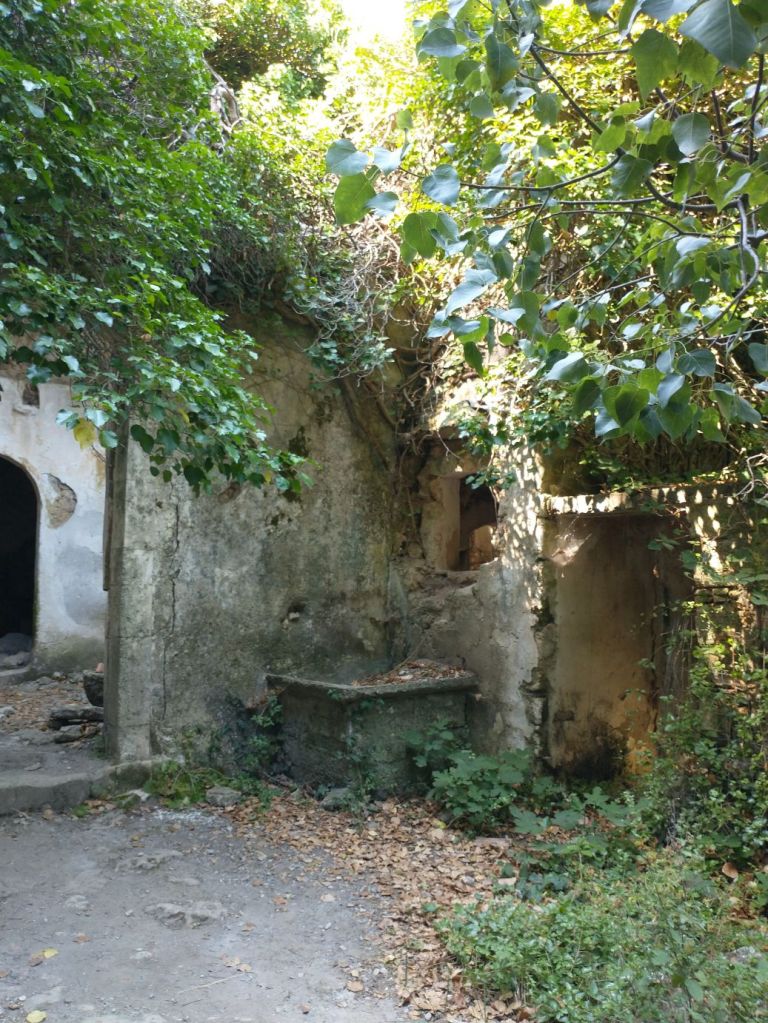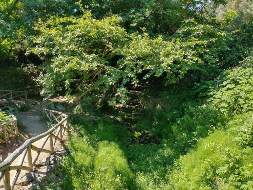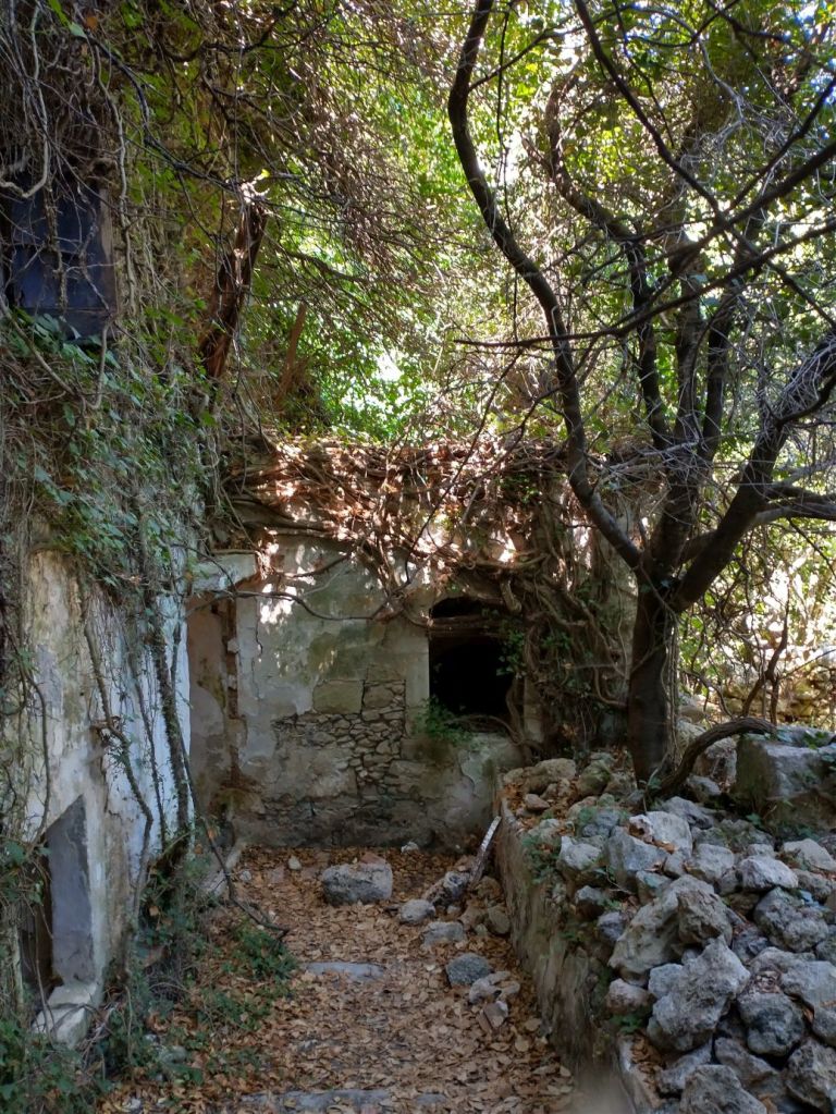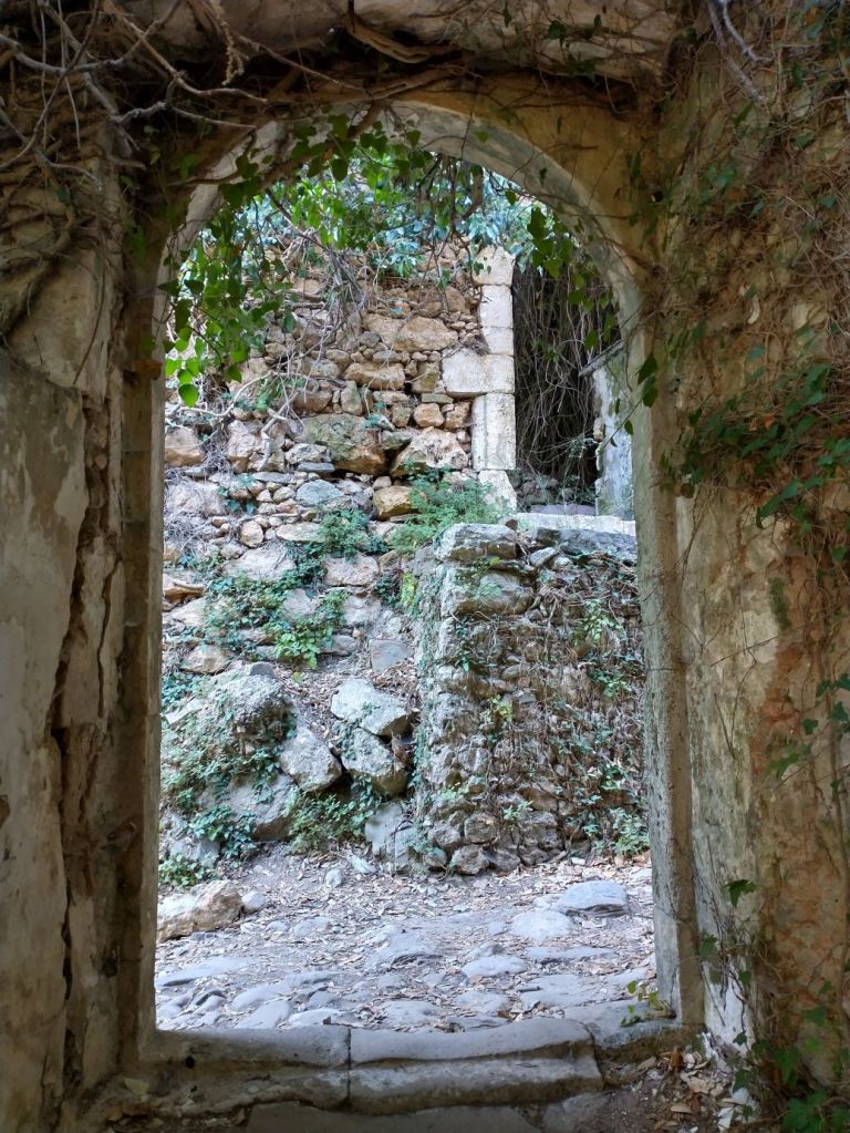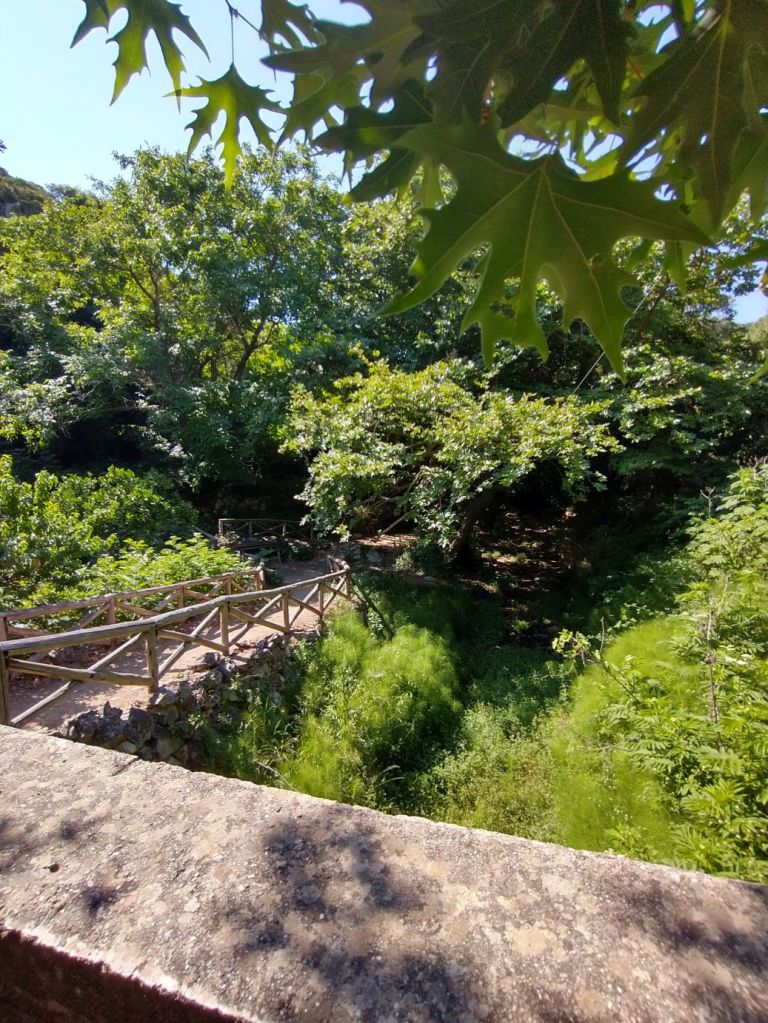 Down we continue, through gorgeous flora and fauna, and tons of crumbling buildings. Because of the Mili stream, this area was once populated with close to 30 watermills, dating from the 16th Century. Mostly flour mills, these mills supplied the whole Rethymno region in their day but were all abandoned in the 1970s. Now it is just a wonderful place to hike and explore the old ruins – which we do, very happily!