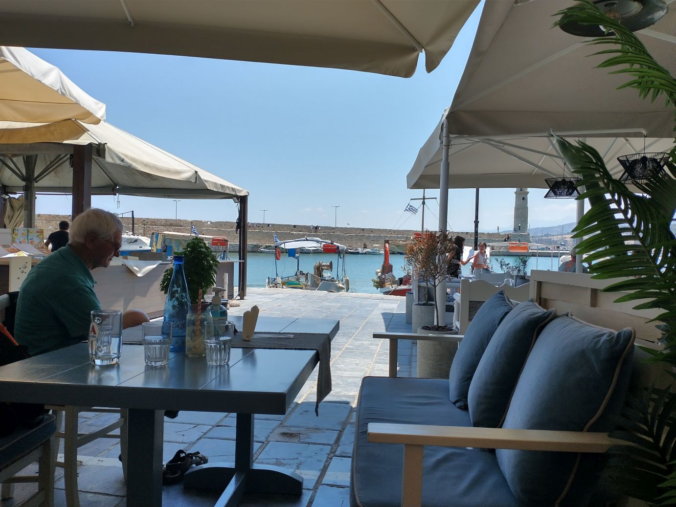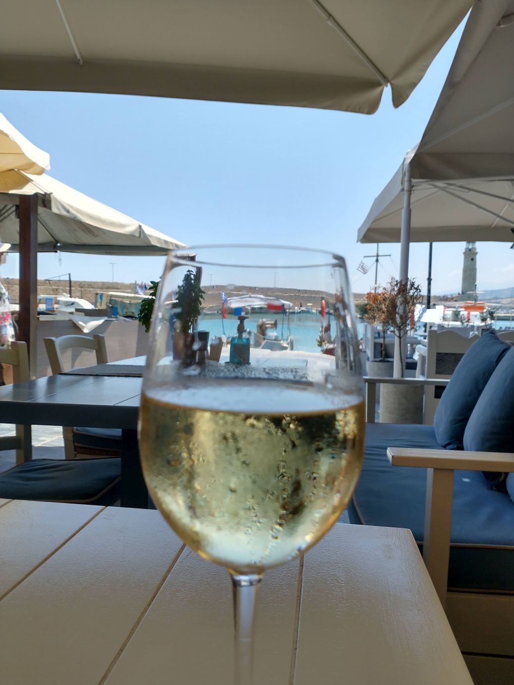 We’re here though, so we’re going to make the best of it. And the best of it turns out to be lunch at the first restaurant we spot on the harbor, Kritamoc. There are empty tables, it is outside under a shaded awning, and well, it’s lunch time – we’ll sit for a spell.