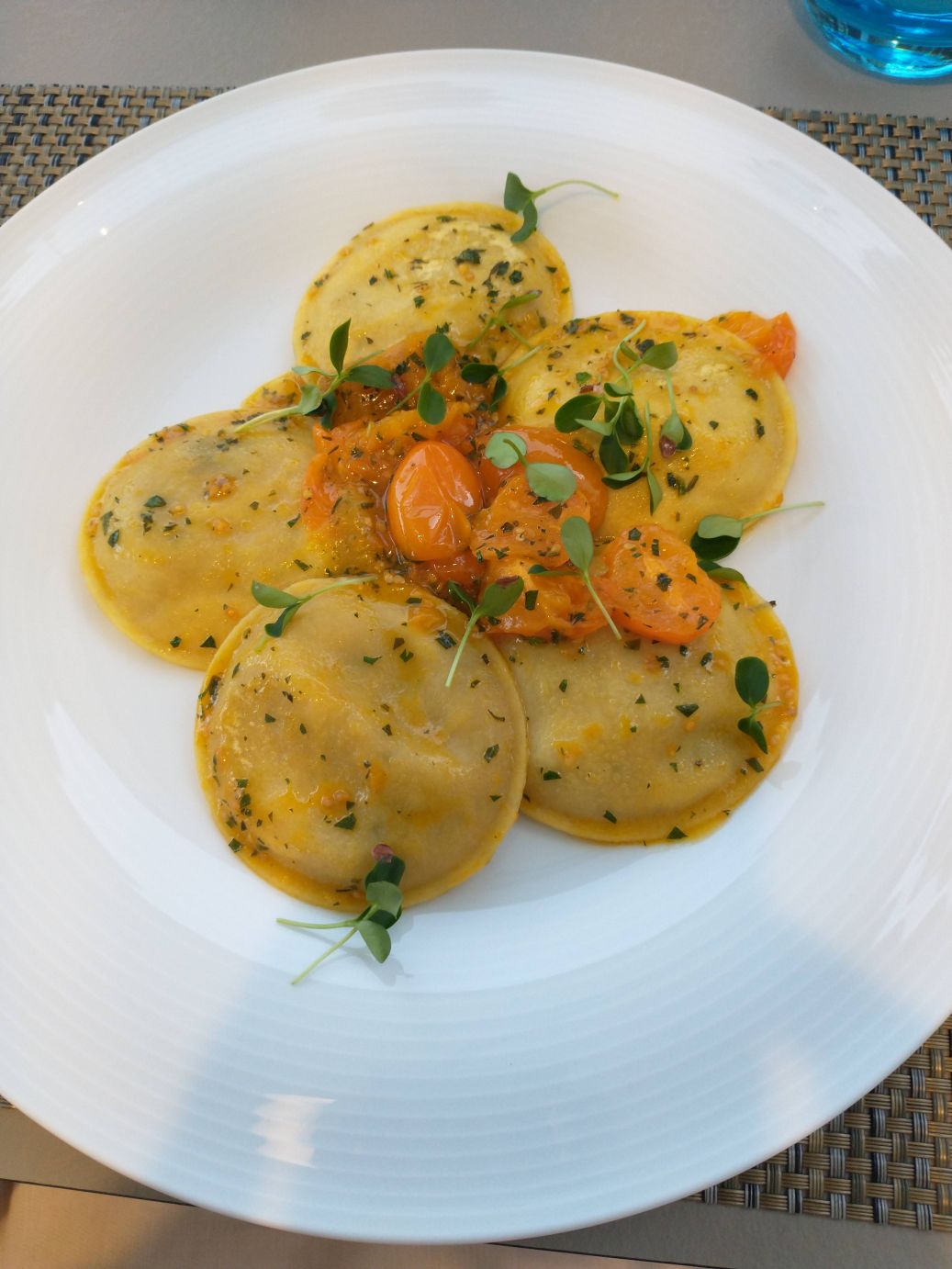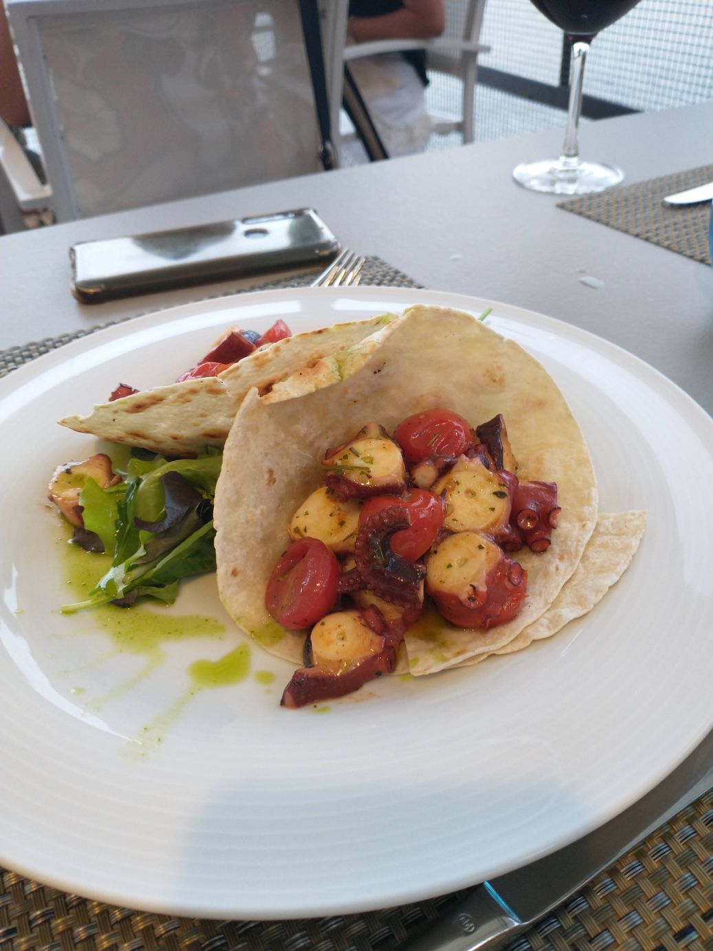 They come to greet us, help us check in, then escort us down the lakeside promenade to a wonderful dinner right on the lake at Europa. A fabulous meal of Octopus tacos (how could Ed resist), Eggplant ravioli (the description was Panzerotti which is like a stuffed empanada, not ravioli, but regardless, these things were wonderful), a monstrous Bruschetta for Gaby and fish for Sigis. Totally perfect!