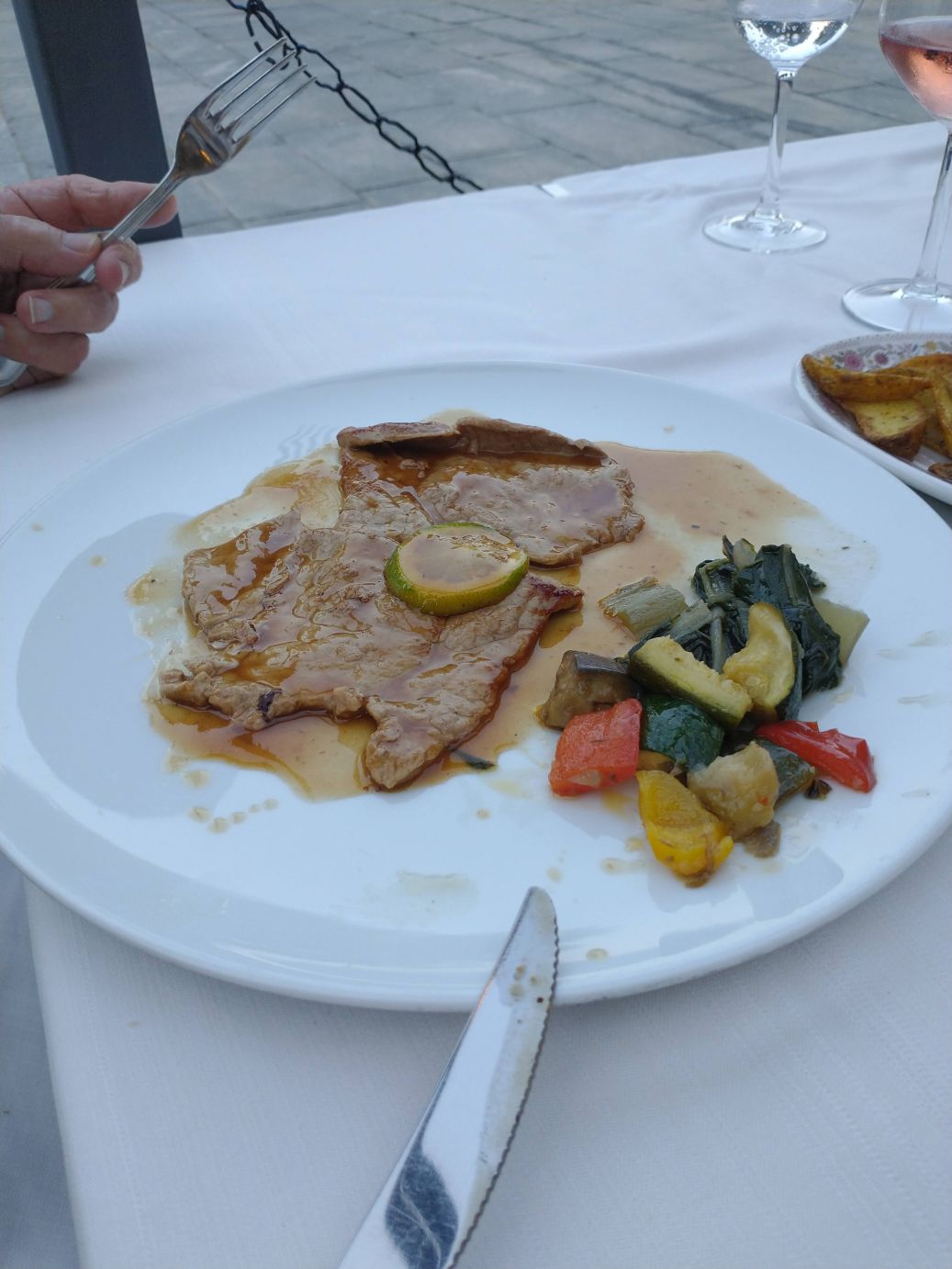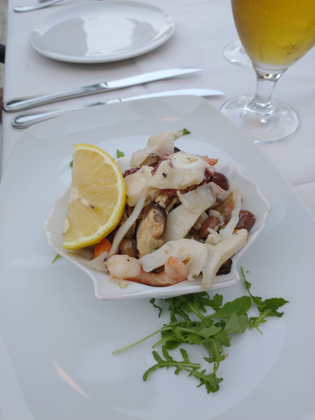 Moving on, we head down the promenade to Ristorante Il Portico, where Sigis had made reservations for us when we were here earlier. Great planning! Outside, right on the promenade, we spend another enjoyable evening on the waterfront, digging into a lovely meal of seafood cerviche (that Ed and I shared), veal marsala for Ed and Tuna with a peach sauce (amazingly good) for me. I’m now on a search for peach sauce recipes, it was that good!