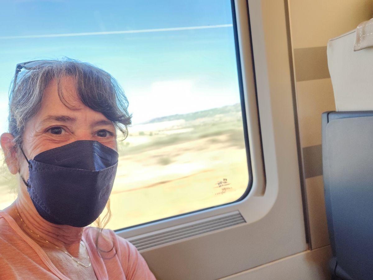 Once we see which platform, we hustle over to the line, pay our 30 Euro fee for the big bag (because the online system would not work for us to pay 15 Euros in advance – we tried and tried and tried for days – but no go), then hustled down the platform to our car and stowed our bags. Phew. Actually, that was easy. Until we realized we should have kept the smaller bag with us and put it overhead. OY. We went up and grabbed it and then the 2 of us hoisted it up – we needed both of us – that puppy is heavy! But at least now we’re old hands at it and can easily handle tomorrow’s train ride to Barcelona.