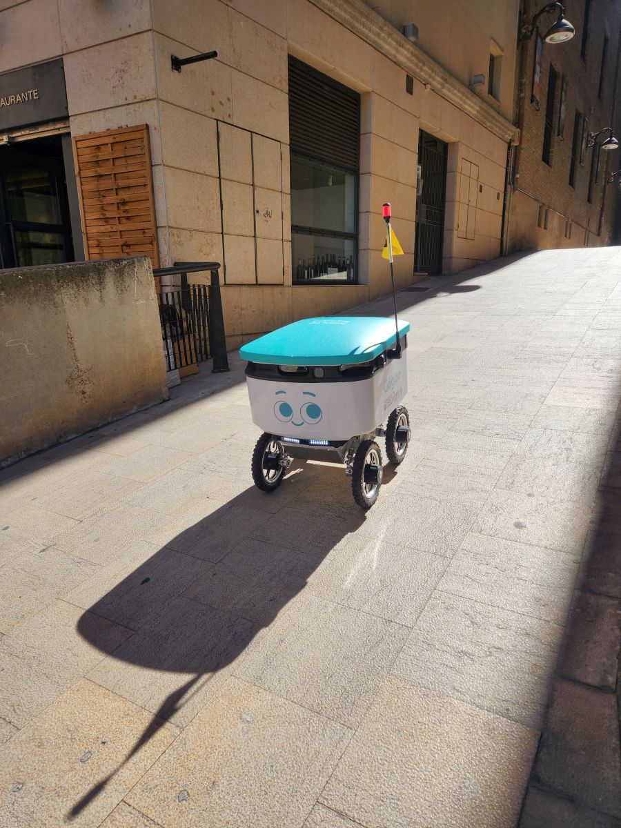 We were still too early for the afternoon opening, so we stopped for a cappuccino at a cute little place around the corner and entertained ourselves by watching this delivery robot get lost on the little cobblestone streets. It went up and down this one street 3 or 4 times, then parked outside an apartment looking place, opened it’s hatch, waited a bit, then closed the hatch and went back of the little street. It was too funny. The last we saw it was rolling along the narrow alley across from the Goya museum!