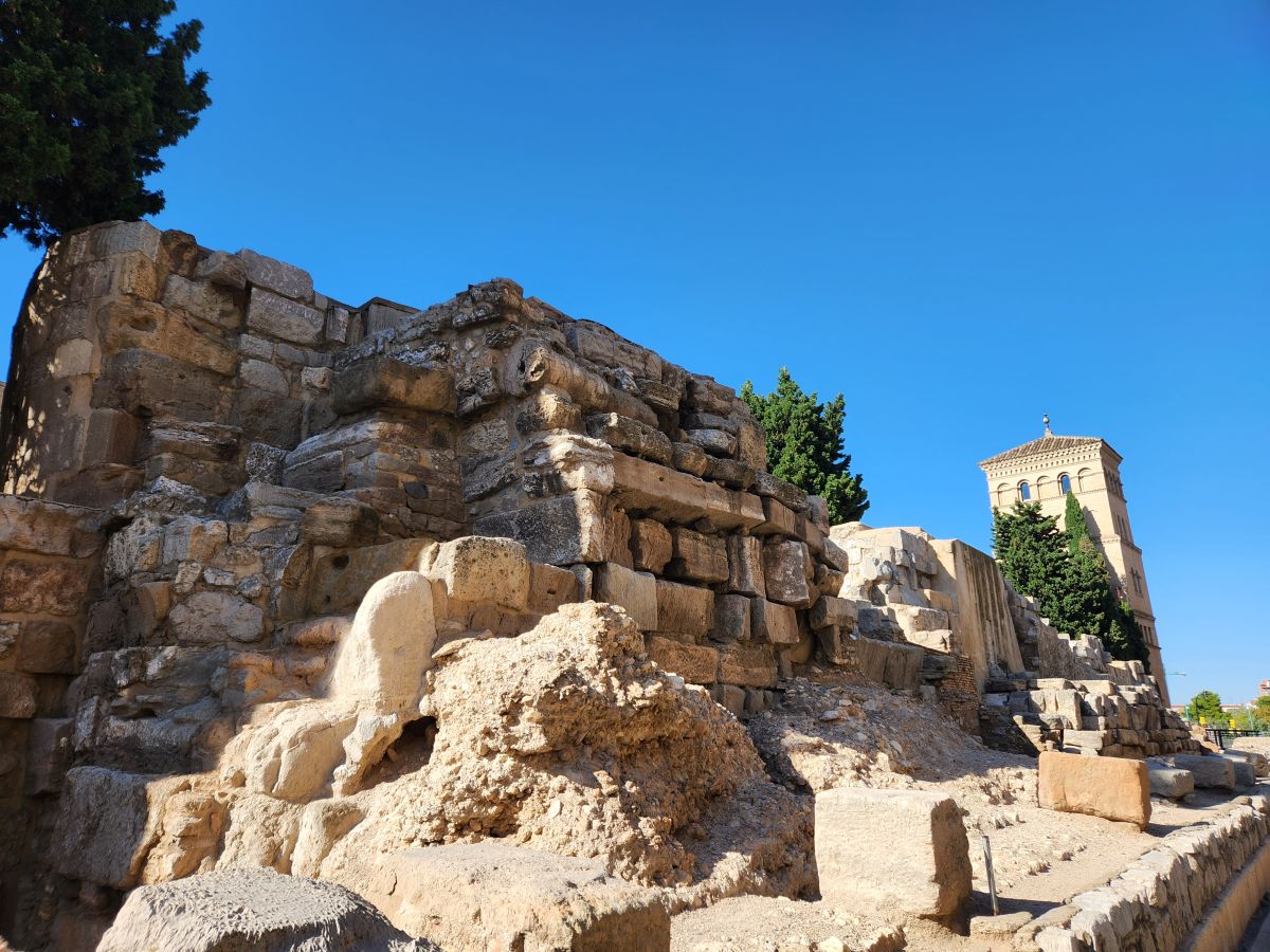 Of course it is too early to check in, so the sweet reception gal checked our bags, gave us a whole bunch of info and a map and we were off, walking into town along the main road from the train station. About 30 minutes later we arrive in the old town, which is a great little place full of old narrow cobblestone streets and great architecture. There are tons of restaurants and a bunch of Roman Ruins. Zaragoza was formerly known as Caesaragusta, the only Roman city known to have Caesar’s full name attached. Thought to be founded in 14 BC, there are 4 museums featuring the Roman ruins in town. Just up our alley! Unfortunately, though, all these ruin museums are only open until 2 so we just barely made it to the Forum ruins. The remaining 3 museums – the theatre, the public baths and the river port – don’t open again until 5pm, which we figured was too late.