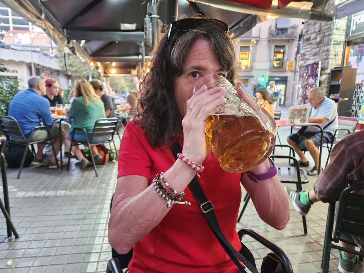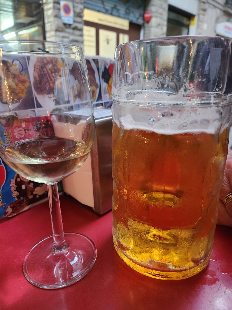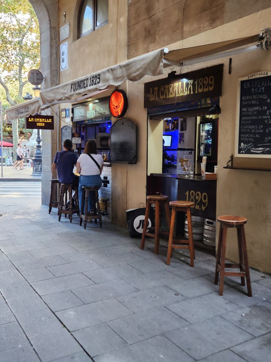 Hitting La Rambla we head down toward the water, dodging tourists along the way, to Kiosko Bar – which btw, is now called La Cavalla, because it is the oldest (and smallest) bar in Barcelona, continually operating since 1829. We had found this little corner hole in the wall (literally) years ago and loved it for the atmosphere. It was actually open this time (last visit we were too early) and full of patrons (mostly local it seemed) whom we joined for a beer and wine, enjoying the conversation all around (and trying to translate as practice for my pathetic Spanish skills!).