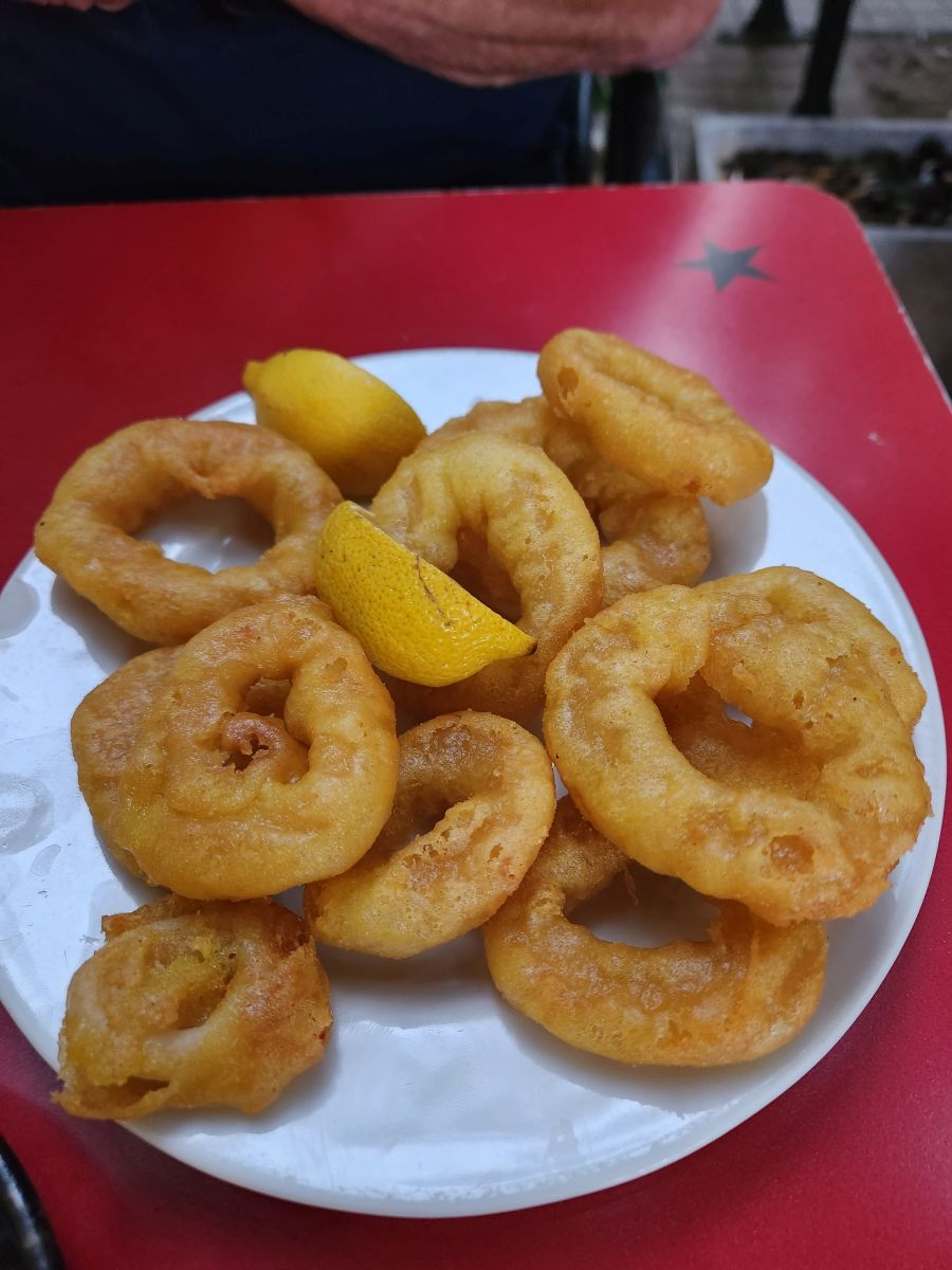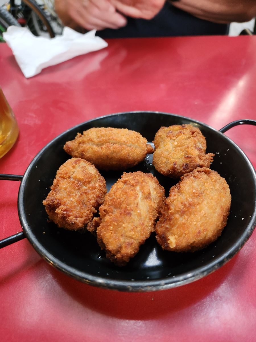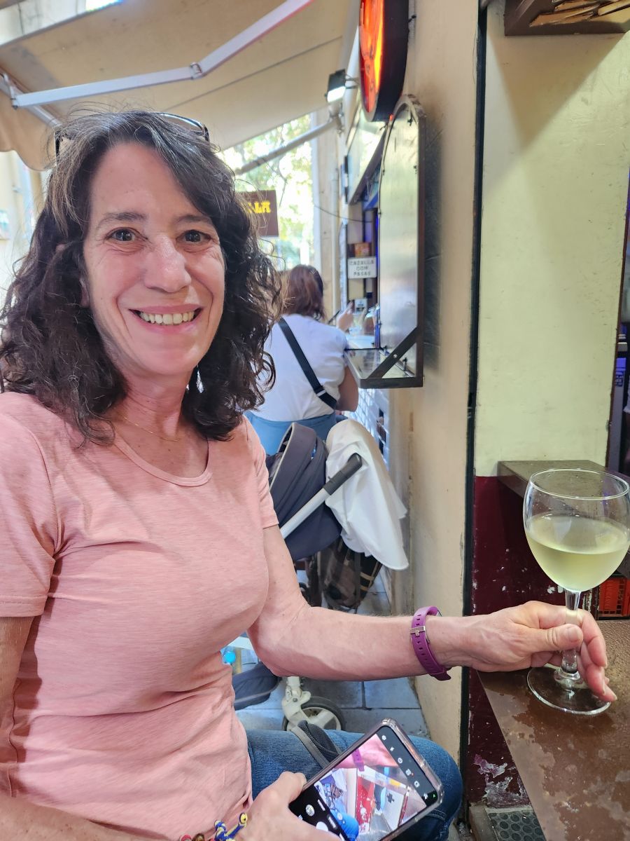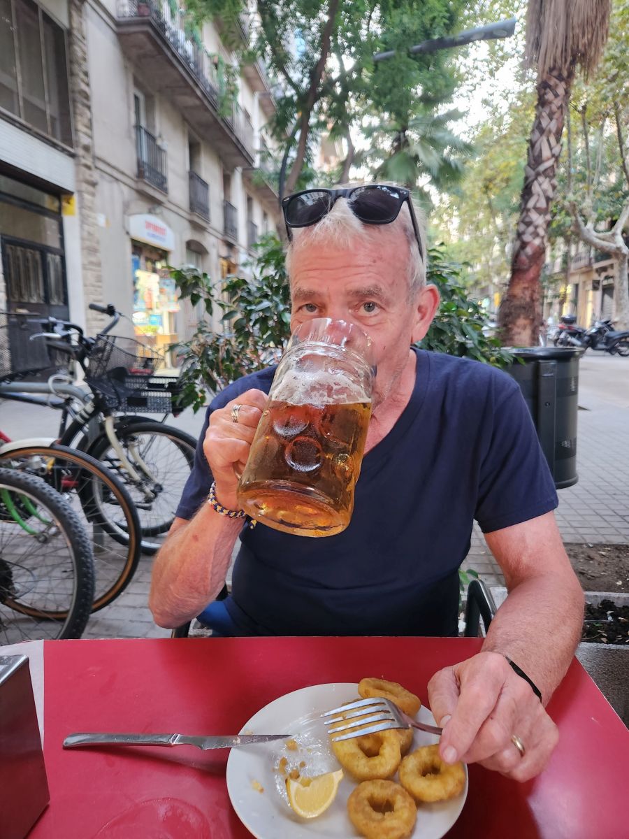 Hitting La Rambla we head down toward the water, dodging tourists along the way, to Kiosko Bar – which btw, is now called La Cavalla, because it is the oldest (and smallest) bar in Barcelona, continually operating since 1829. We had found this little corner hole in the wall (literally) years ago and loved it for the atmosphere. It was actually open this time (last visit we were too early) and full of patrons (mostly local it seemed) whom we joined for a beer and wine, enjoying the conversation all around (and trying to translate as practice for my pathetic Spanish skills!).