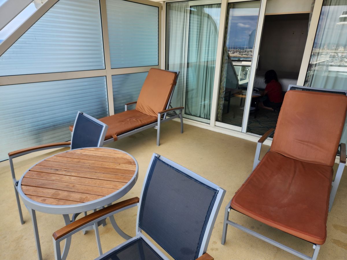 The show tonight didn’t appeal to us, and there is only one at 10:15, so we figured, we have this huge balcony – we’re heading back there! Went to the pool bar, which is our closest bar and will end up being our go to place for drinks, picked up a wine and beer and headed out to the balcony for the evening.