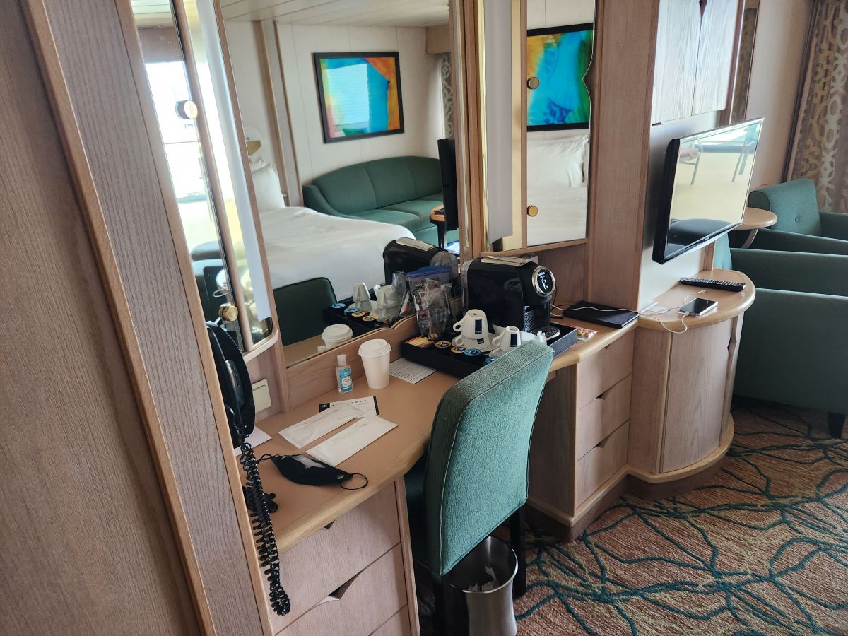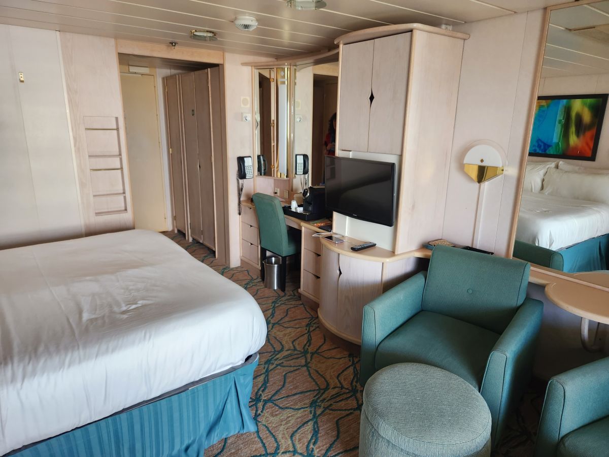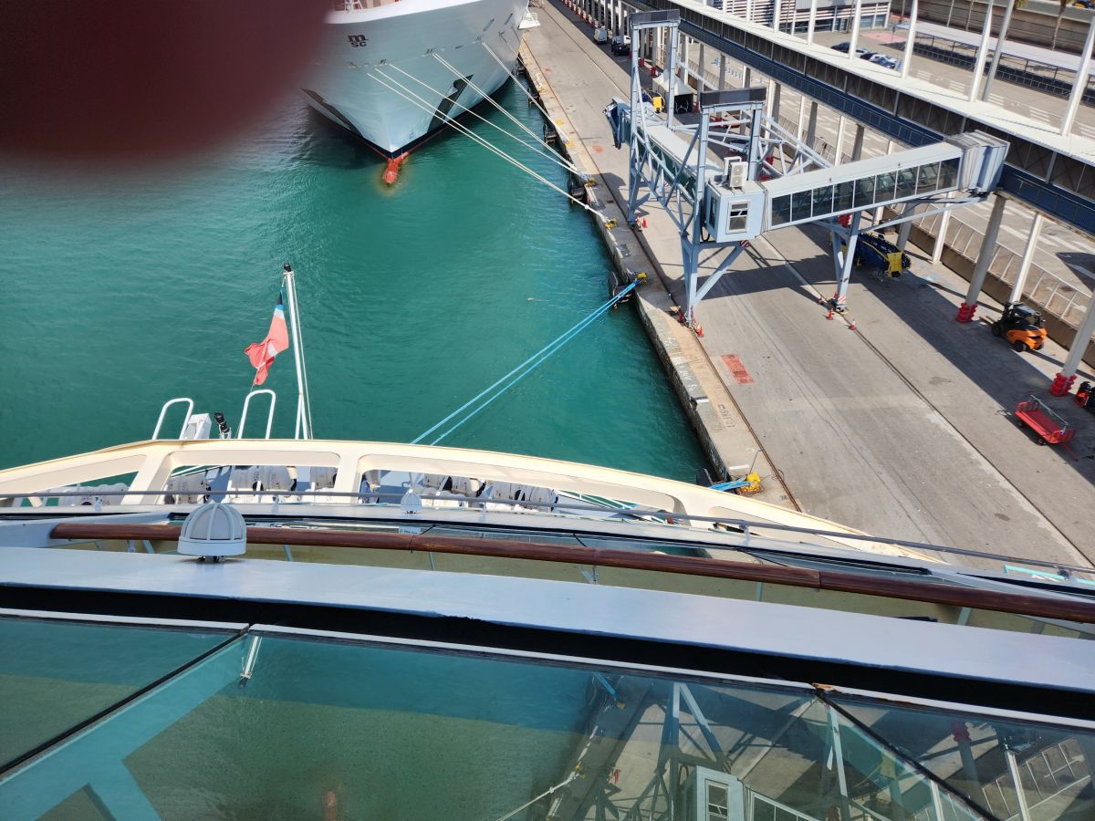 Back at the hotel we wasted as much time as we could before checking out and hailing a cab on the street. We were lucky and found one right away, as he was letting someone off in front of the hotel. Then it was a quick ride over to the pier where check in was the easiest we’d ever had! We had completed all our paperwork online, including scanning our passports and uploading a photo. All we had to do was show them our Set Sail pass and we walked right one. Seriously! The security guard scanned the sea pass, our photos were in the system and on we went. The keys were waiting for us on the door to our cabin, and voila! We are aboard the Vision.