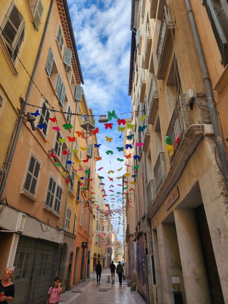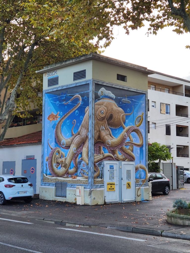 The ship shuttle thing works perfectly, we arrive back at the dock at the right time, hop right on the boat and off we go. We are let off in the middle of the town of Toulon, couldn’t ask for a better shuttle – except the cost! We had plans to walk up to the Old Royal fort at the end of the peninsula, but the walk isn’t at all what we expected. It is all on sidewalks through a very residential (and deserted residential at that) area, so we abort that destination and turn back into town.