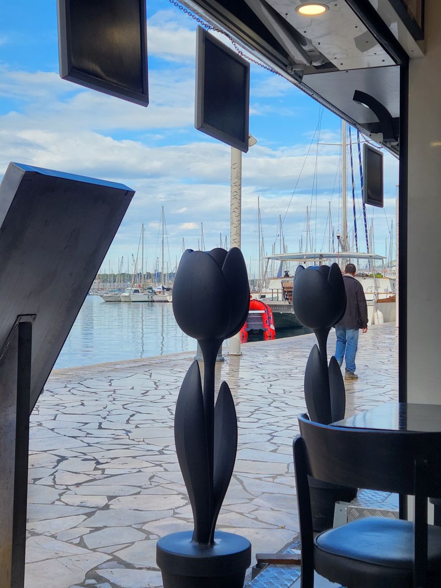 The other couples peel off to find coffee. We do the same, ending up at this totally local joint where we grab 2 cappuccinos and strategize on what to do. The ship has an exorbitantly expensive boat shuttle into town, which at this point looks like our best bet. Since we can’t find hide nor hair of the darn local shuttle, we decide to give it up, stop the frustration and head back to the ship, pay our $25 each (highway – or waterway – robbery) and just do it. Hey, at least we got a really nice walk and good cappuccino out of it.