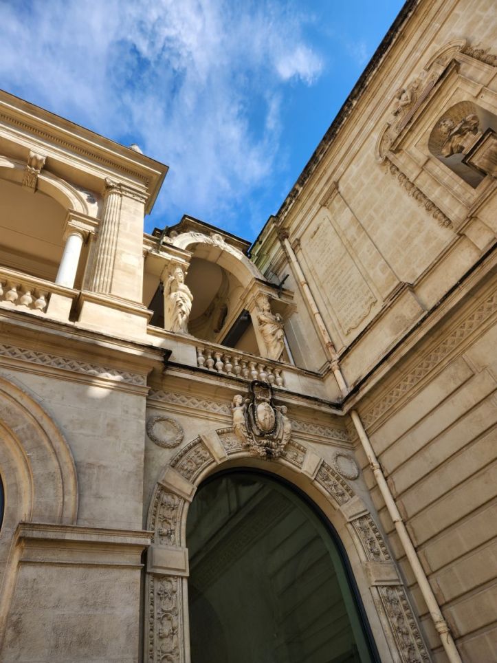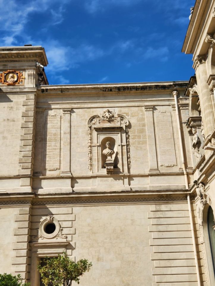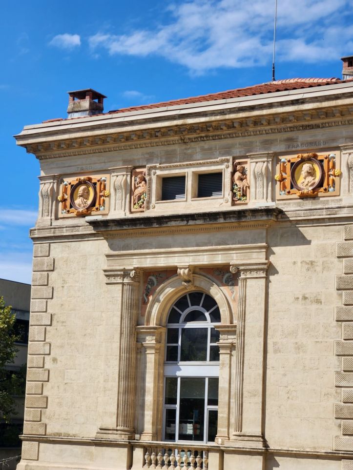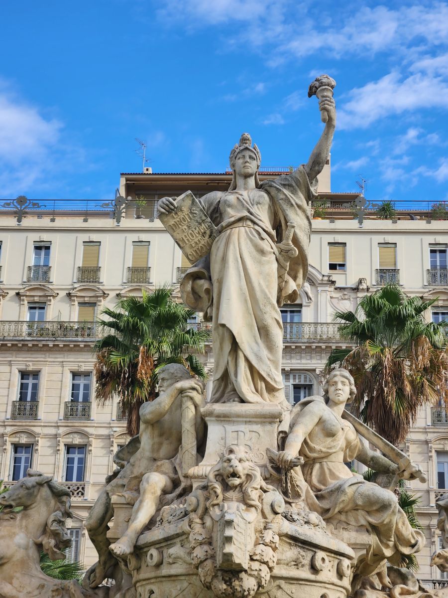 Next we wander through town, finding the Opera house, the 2nd largest in France, then onto Place de la Liberte with the impressively huge Fontaine de la Liberte. Once there, we realize we are really close to the museum, so we wandered over, checking out the opening times (because we have come to understand that you can NOT trust Google for opening times – they are wrong more times than right). We’re relieved to see that indeed, the museum is open at noon. But it is barely 11:00, we need more time burning – and lunch. There does not appear to be any restaurants or cafes around, but we do spy a Carrefour across the street. Picnic time!