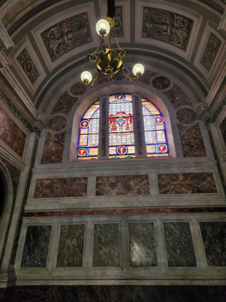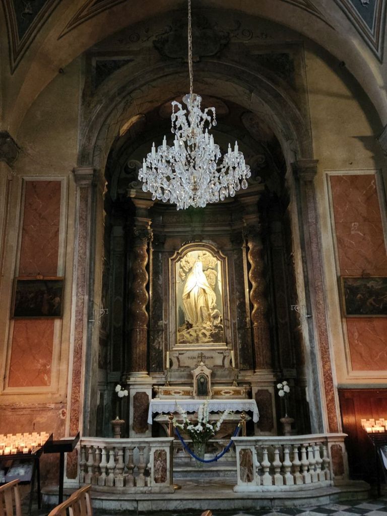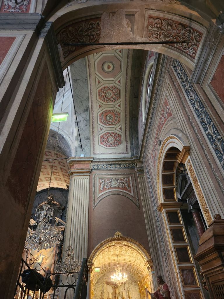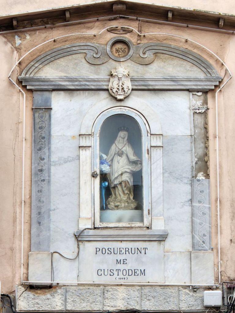 Next, we hit the main the cathedral, Santa Maria Assunta, with its austere exterior and marble covered interior. The cathedral, built in 1593 in the Latin cross style is still called the Duomo – there’s some of the Italian influence for you.