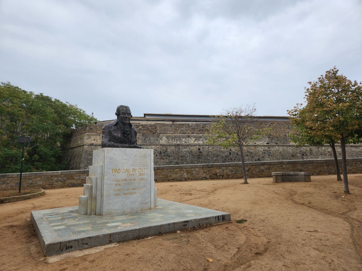 Continuing on we walk to the Citadel, which is closed for renovations (at least not because it is Monday, LOL), where there is a statue of Pascal Paoli, who is considered the father of Corsica, as he wrote the 1st Corsican Constitution – actually the first ever written constitution in the world. Our guide is so knowledgeable, he is a history buff, studies it, and loves to share his knowledge. He tells us all about Corsican history, how it was first under Italian rule (which is why there are still Italian language names and pronunciations of just about everything). The first rulers were Pisan, then came Genoan. Paoli, then a general, fought for independence and made a name for himself, wrote the constitution. Later, though, the French invaded and won battles, so now Corsica is ruled as a French state. The population still identifies more with Italian though, which explains so much!