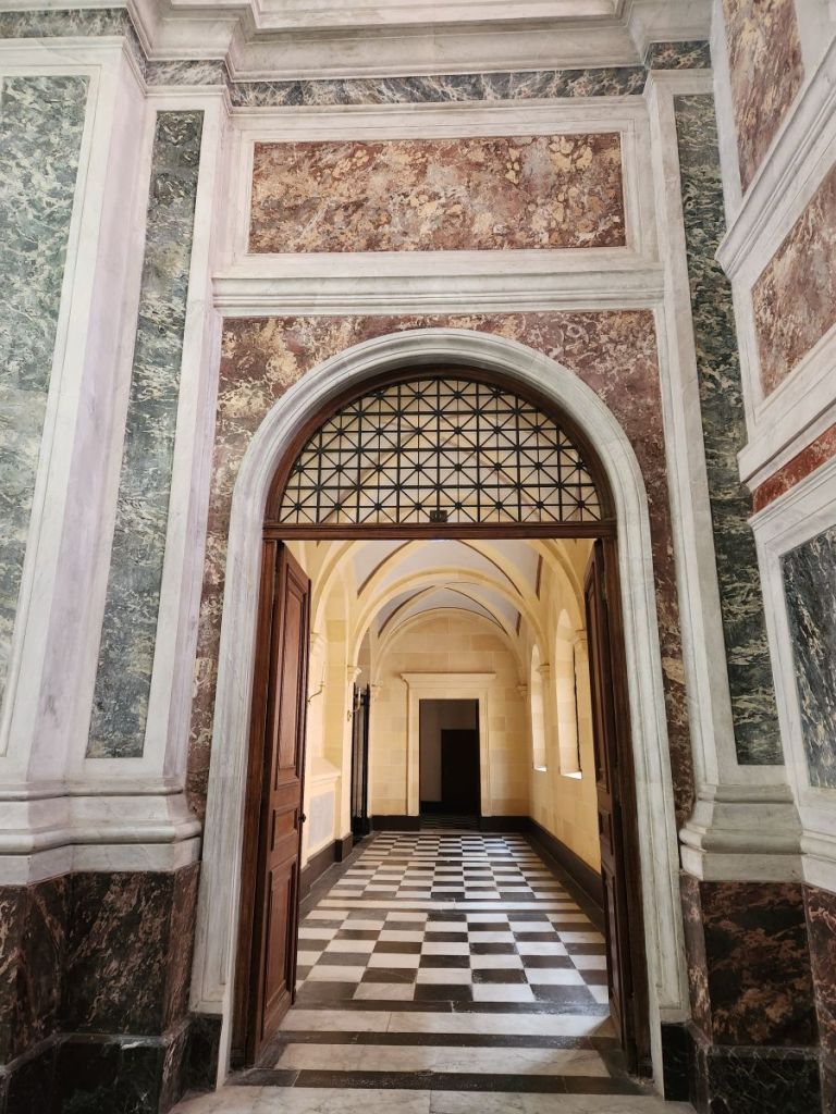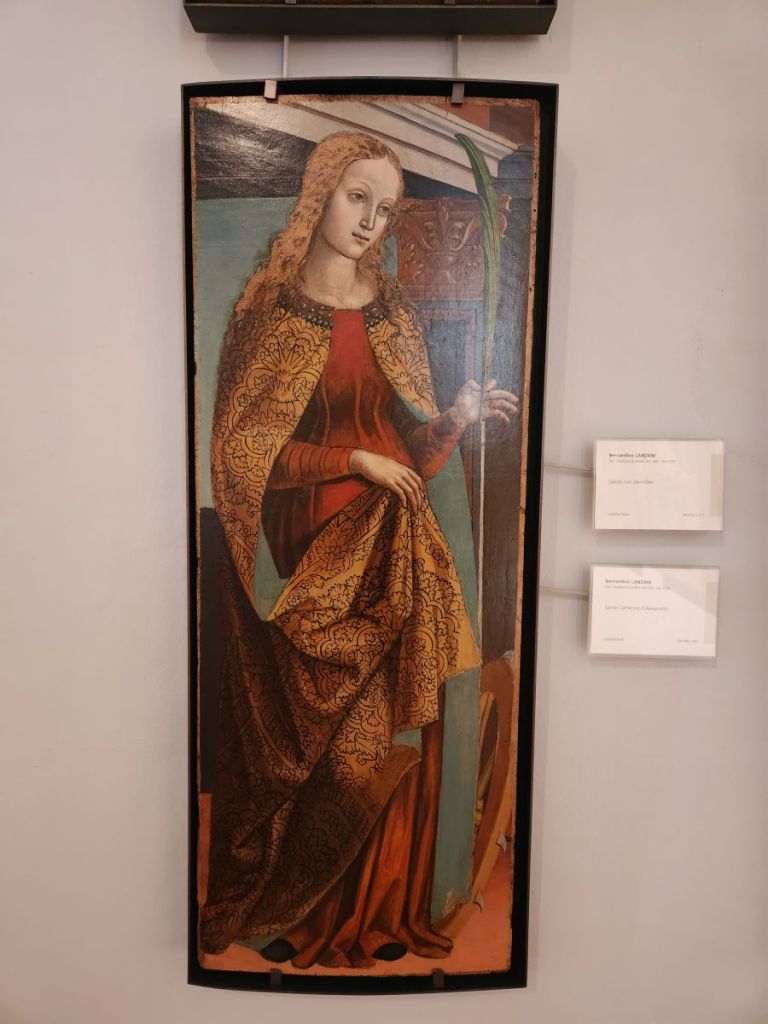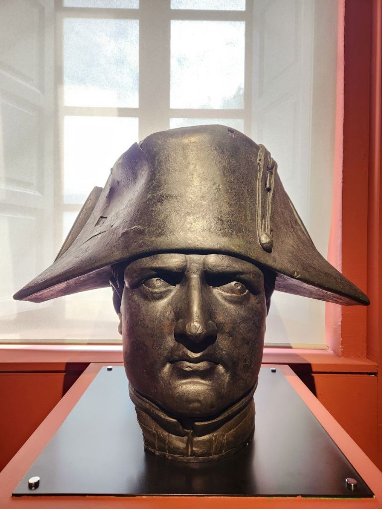 Of course we locate the only open museum in Ajaccio – The Fesch museum. Cardinal Fesch was Napoleon’s uncle who built a palace in 1827 and dedicated 3 wings to house works of art. The museum is huge, with the 2nd largest collection of Italian painters outside of the Louvre. Three floors of amazing paintings, including one of me! Sainte Catherine d’Alexandrie! Who knew??? There were some incredible still life portraits, such detail. And of course Napoleon statues, plus this one iron bust with really crazy/creepy eyes!! Then outside in the courtyard was the entrance to the chapel where Napoleon was baptized and his family, including Cardinal Fesch, is buried. It was really amazing and fun.