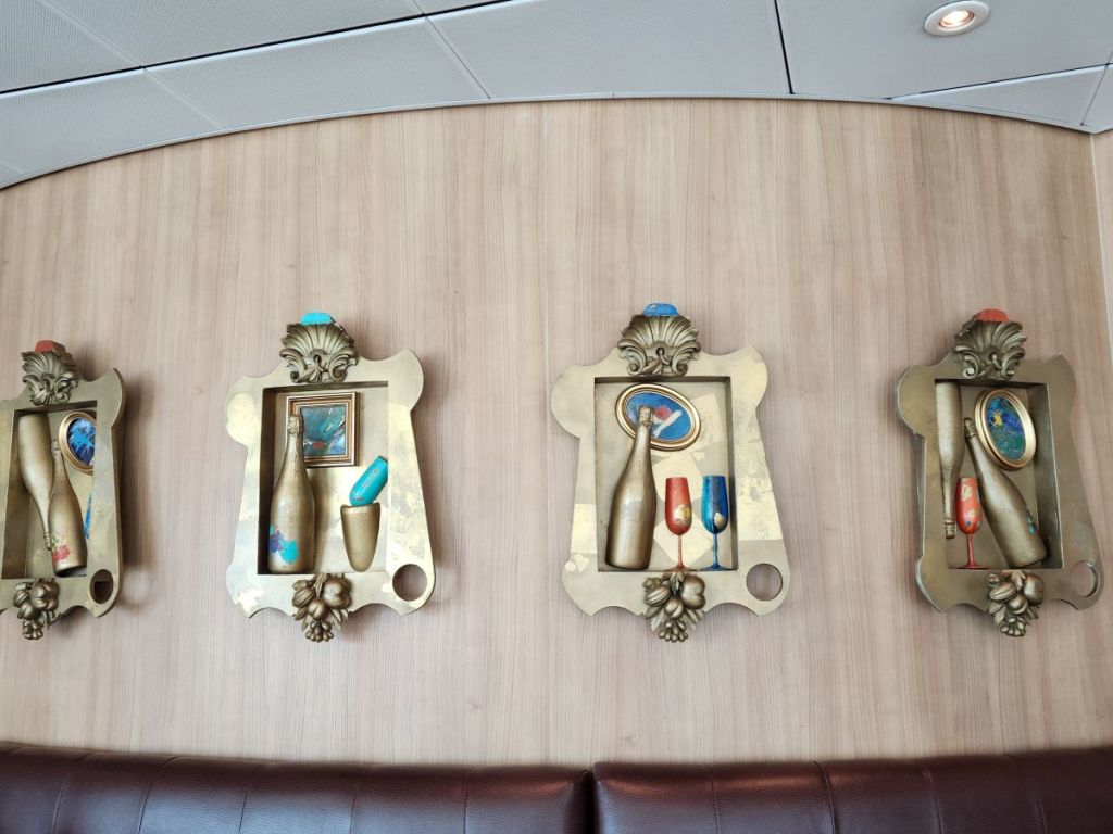 Then it was back to the ship for an early sailing, into the Diamond Lounge for cappuccino (love the artwork in here) and onto the balcony to hang until dinner. Again, we ate in the buffet, Mediterranean night, all good, excellent selection and easy to portion control! The show was a magician which we skipped for the balcony and another lovely night sailing through the Med on our way to Palma.