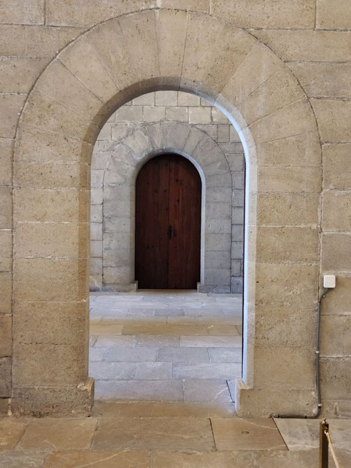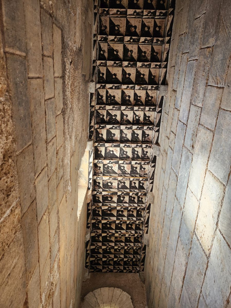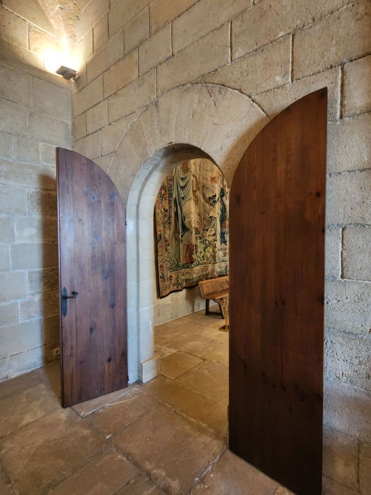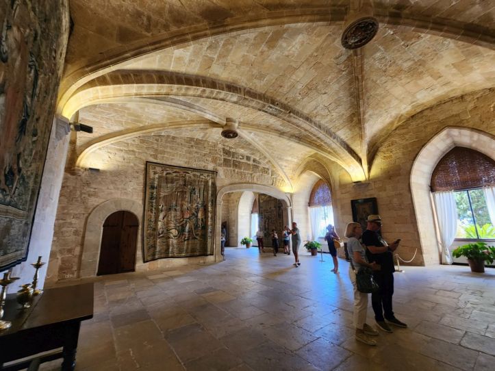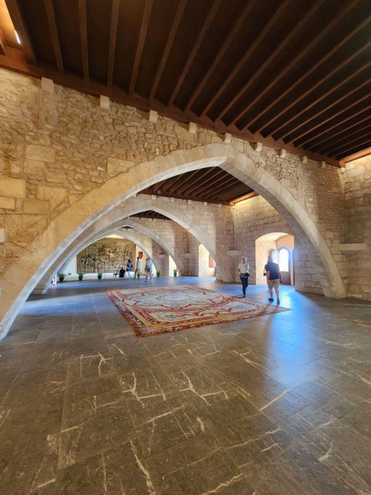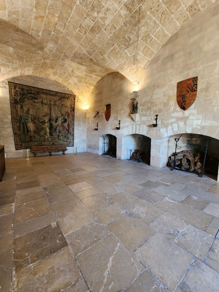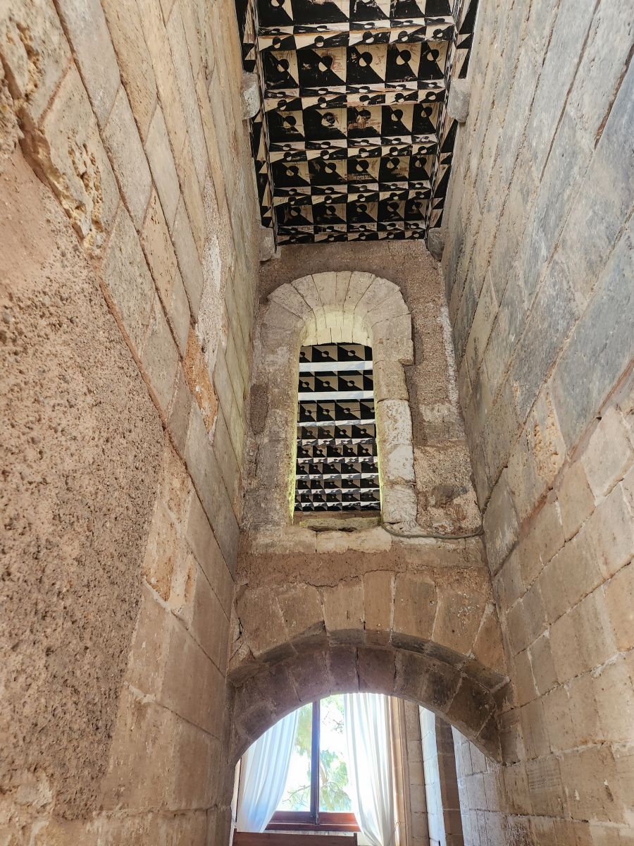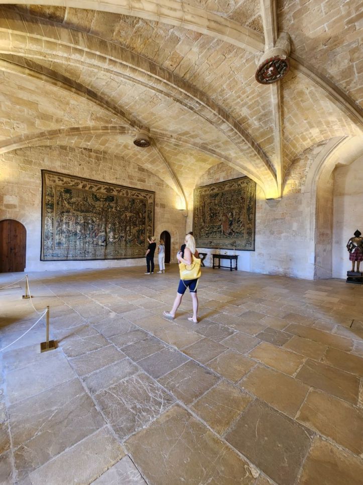 We’ve been here before, but you know memories – we only remember half of what was here – and it really is an amazing building. Built in 1229 originally as a Muslim castle, in 1305 Jaime II took charge of transforming it into a Royal Residence and by 1343 was finally completed when the island was brought under the rule of the Kingdom of Aragon. Truly stunning place – we walked upstairs in this staircase that has the weirdest ceiling, painted in black and white geometric shapes. Bizarre for this time period of architecture!