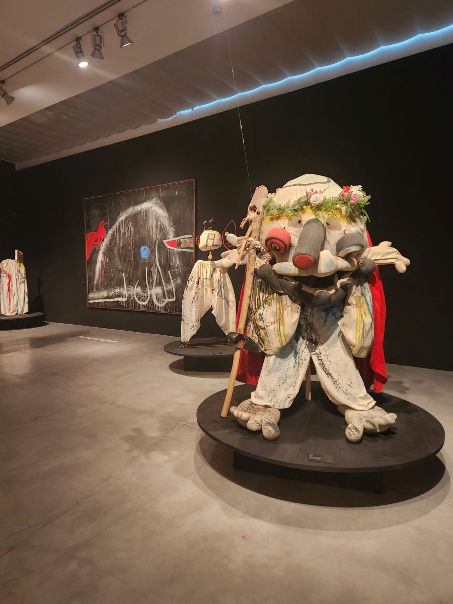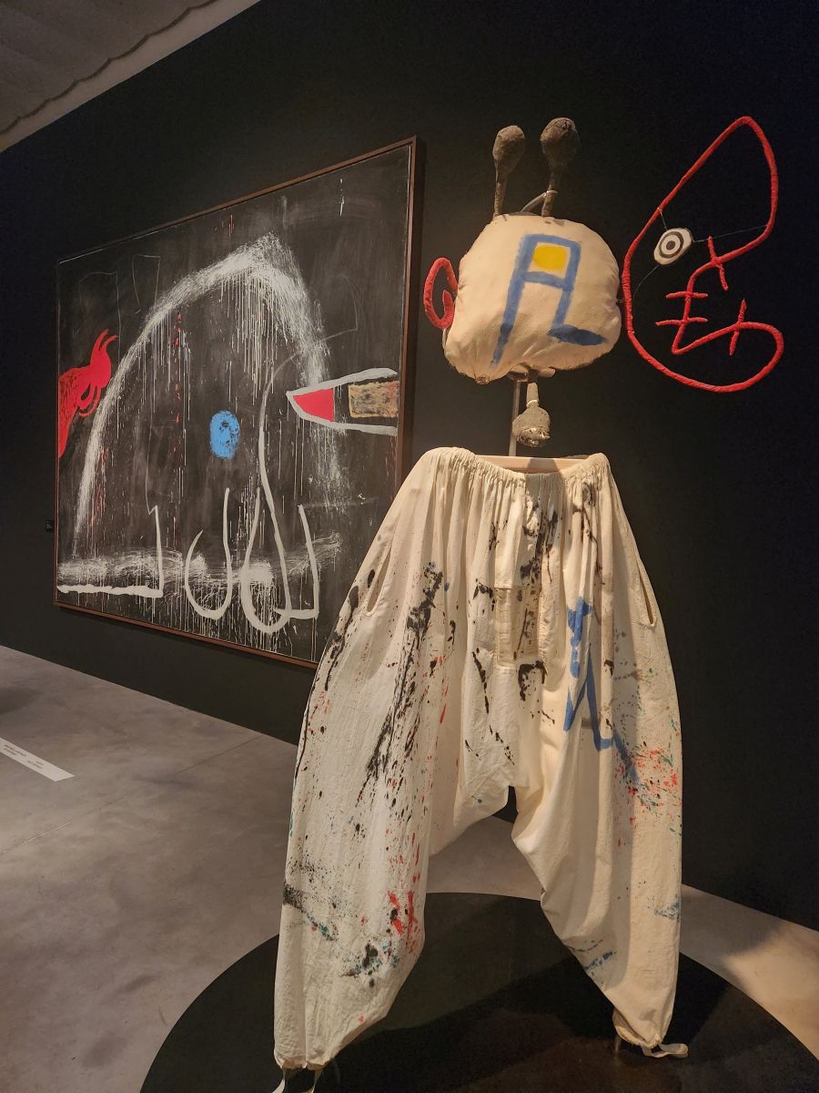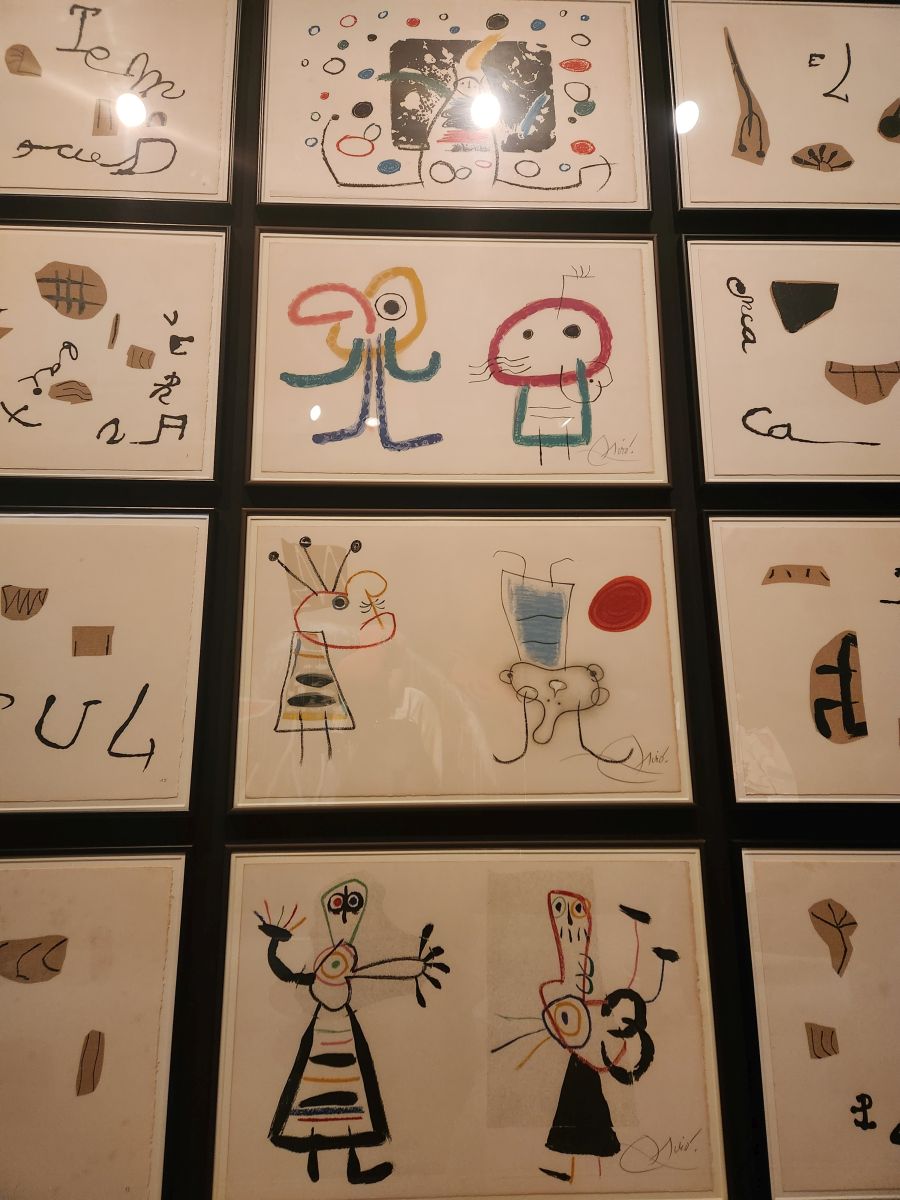 Back inside we visit the Emboidment of the Grotesque exhibit. Grotesque, yes, weird, yes, explanation? Don’t really get it, but it is fun to look at – and a lot of the drawings actually look like Miro. There is also this jacket with blue lights all around it, and wires draped to the floor called the Wandering Jew. ???