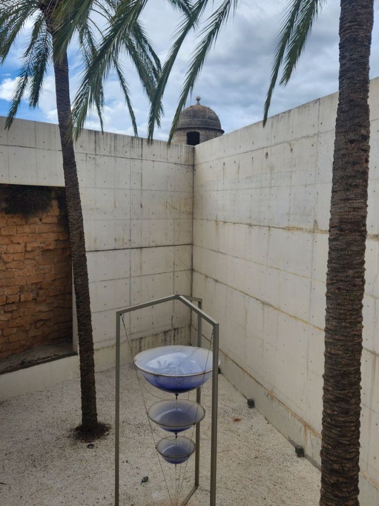 Now onto the Esbaluard Museu D’art Contemporani de Palma. On the way we pass the stone “ball” that I did remember from our last visit. Inside, well, it’s contemporary art. It’s weird, but not bat shit crazy weird! And of course it has been long enough that none of the exhibits are the same. There is a strange, but touching ceramic display about being yourself, other odd displays not worth mentioning and the excellent rooftop where we can take lots of great photos of the city around us. And Ed manning the guard station!
