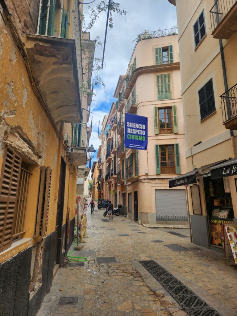 A few days ago, however, RCL announced that we were changing our port time in Palma, arriving and departing an hour earlier due to protests. No one could tell us what the supposed protests were, but when we searched the internet we did see that they had been protesting some of RCL’s big ships coming into port and definitely protesting the over tourism of the island. Palma meet Asheville, Asheville meet Palma. We hear ya Palma! At any rate, we had originally thought about getting a car from the guy at the little kiosk in the parking lot of the terminal, then driving out to the other end of the island for some coastal hiking. But, not knowing what type of protests there might be – or where – we decided to nix that idea and just stay in town and wander. The city has a shuttle bus for 10 Euros each (a much better buy than that darn Toulon boat shuttle) so we figure it is safer to just do that.