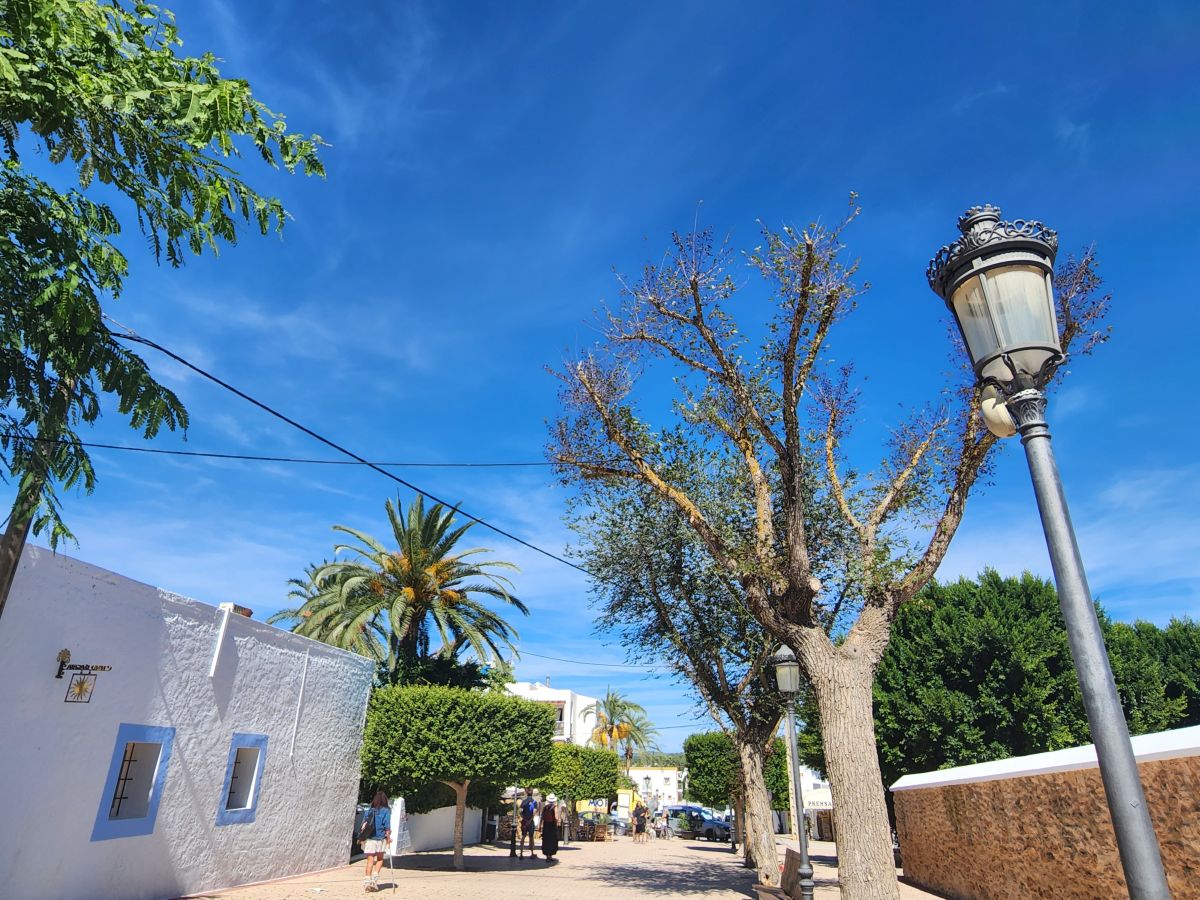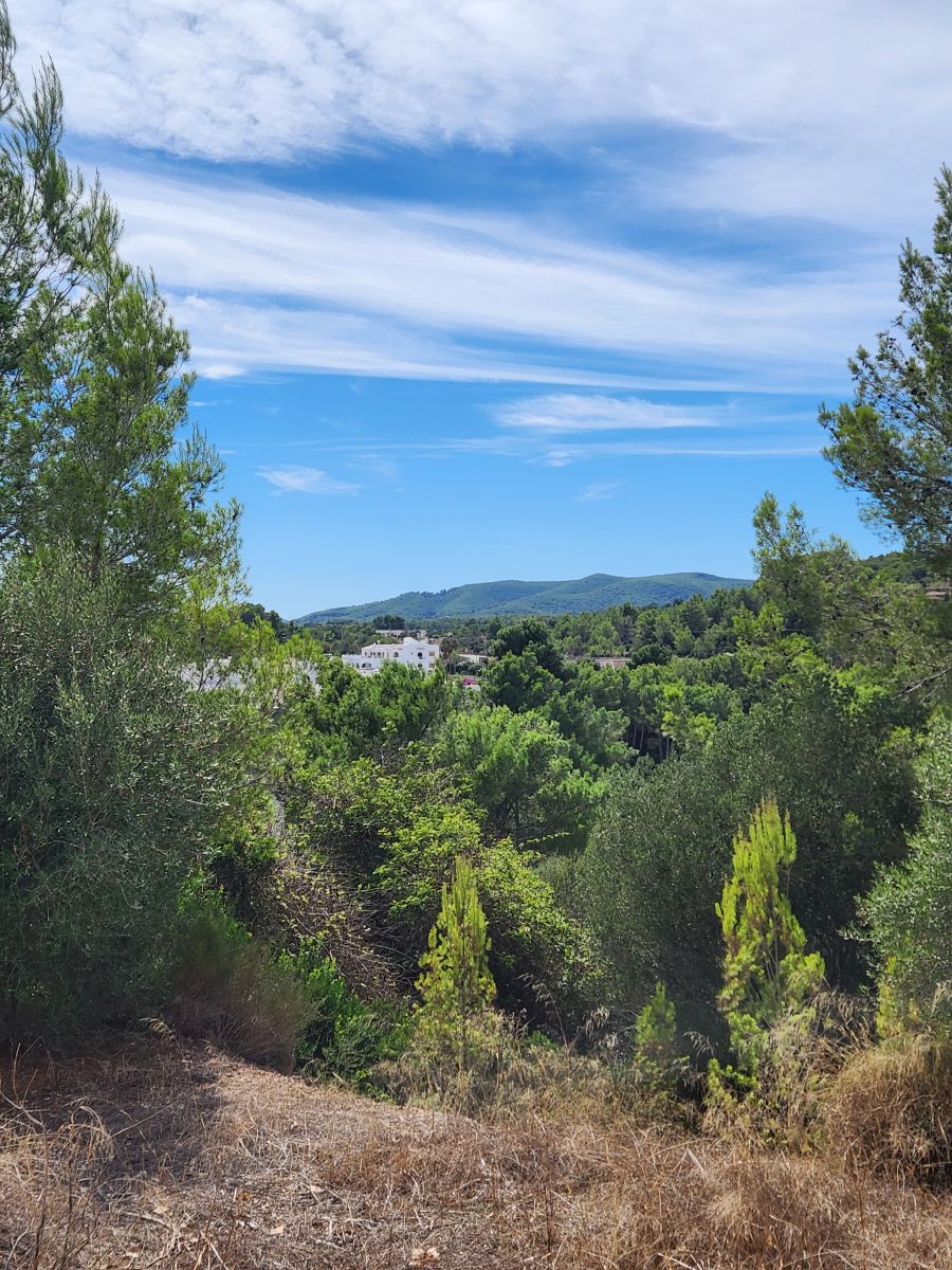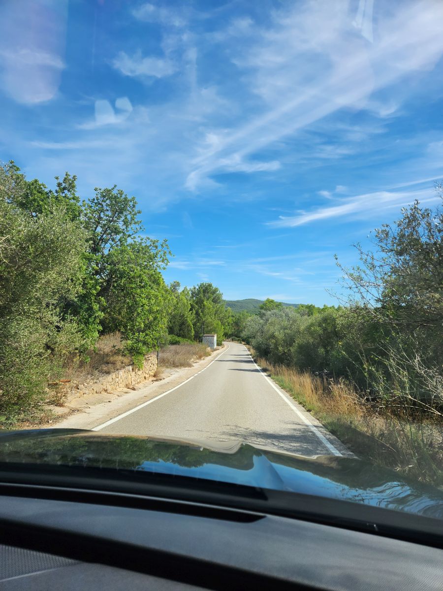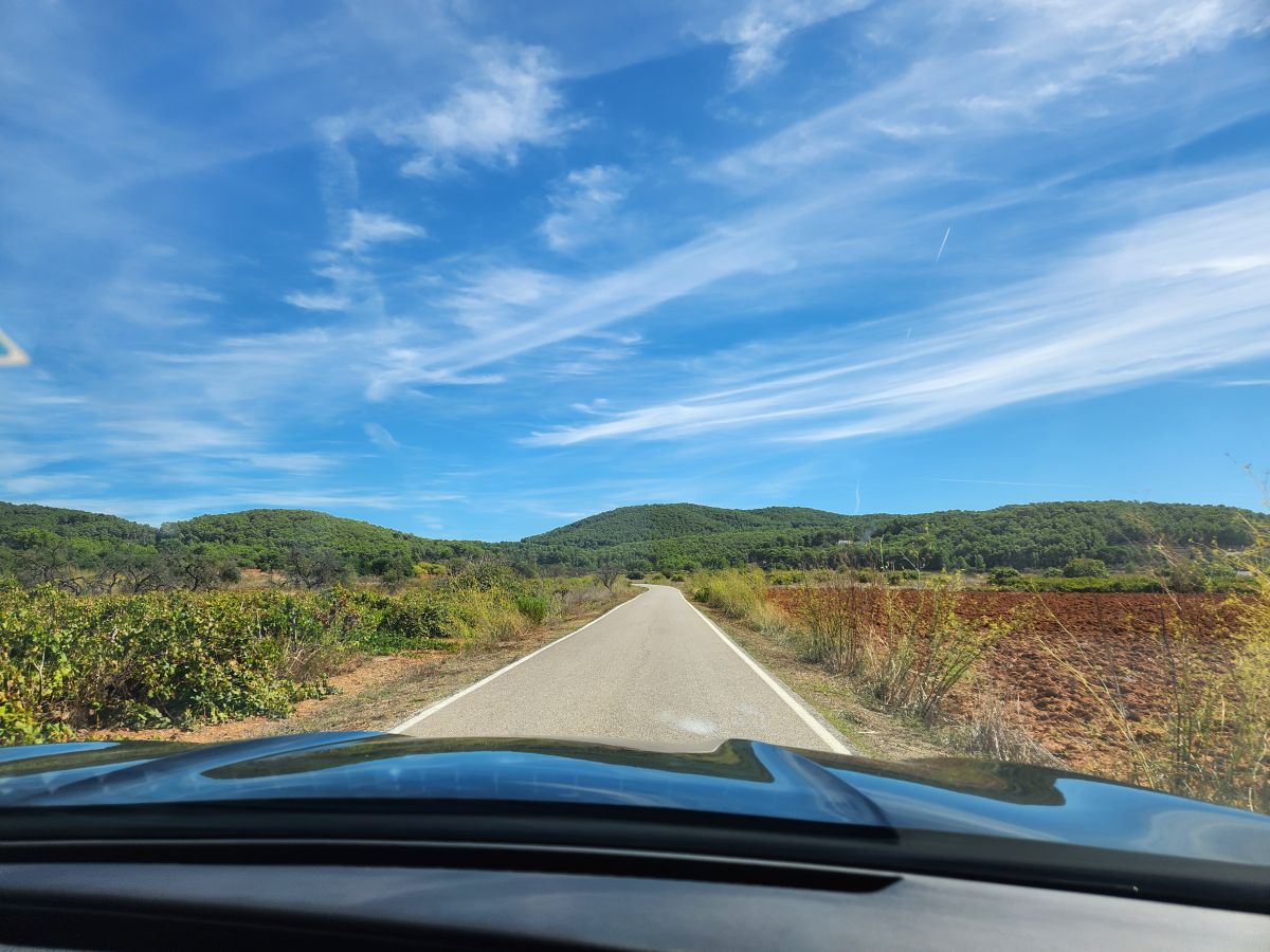 Meandering back to the parking lot, we manage to extract the car from the tight space and navigate out onto the roads through the center of the island. It is definitely un-Ibiza Town-ish. There isn’t another car on the road, and we enjoy beautiful views across the olive groves and down little narrow roads that cut through the fields. Stopping at a restaurant on the crossroads of some of these tiny roads, we grab a cappuccino before heading back otu toward San Miguel, a typical Ibicenco village set up on a hill.