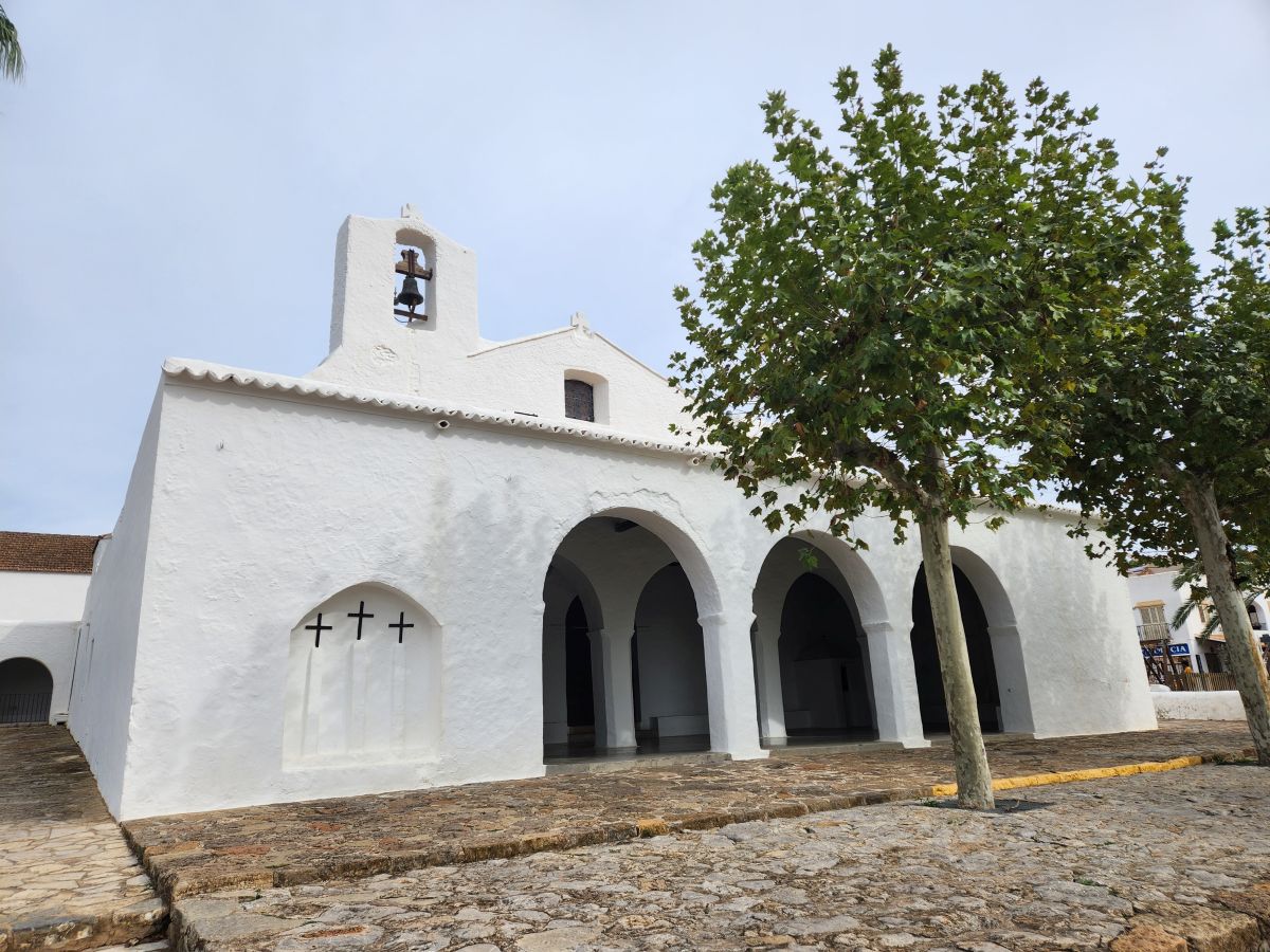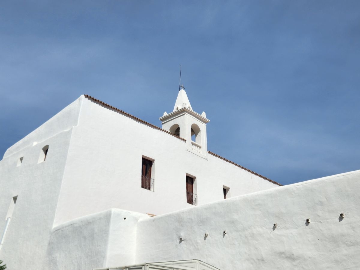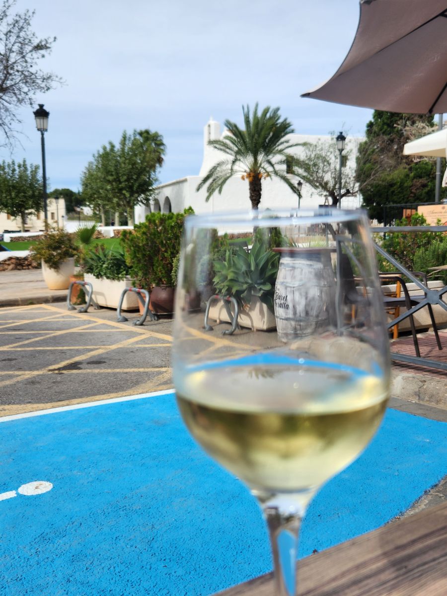 Done with the beach, we hike up the super steep road (phew, work out!) and proceed to drive the narrow little roads back toward Ibiza Town, stopping in the very cute – and very small – little town of San Carlos with the gorgeous white washed church and a few inviting little cafes around the square, where we decide it is time for an afternoon beverage.