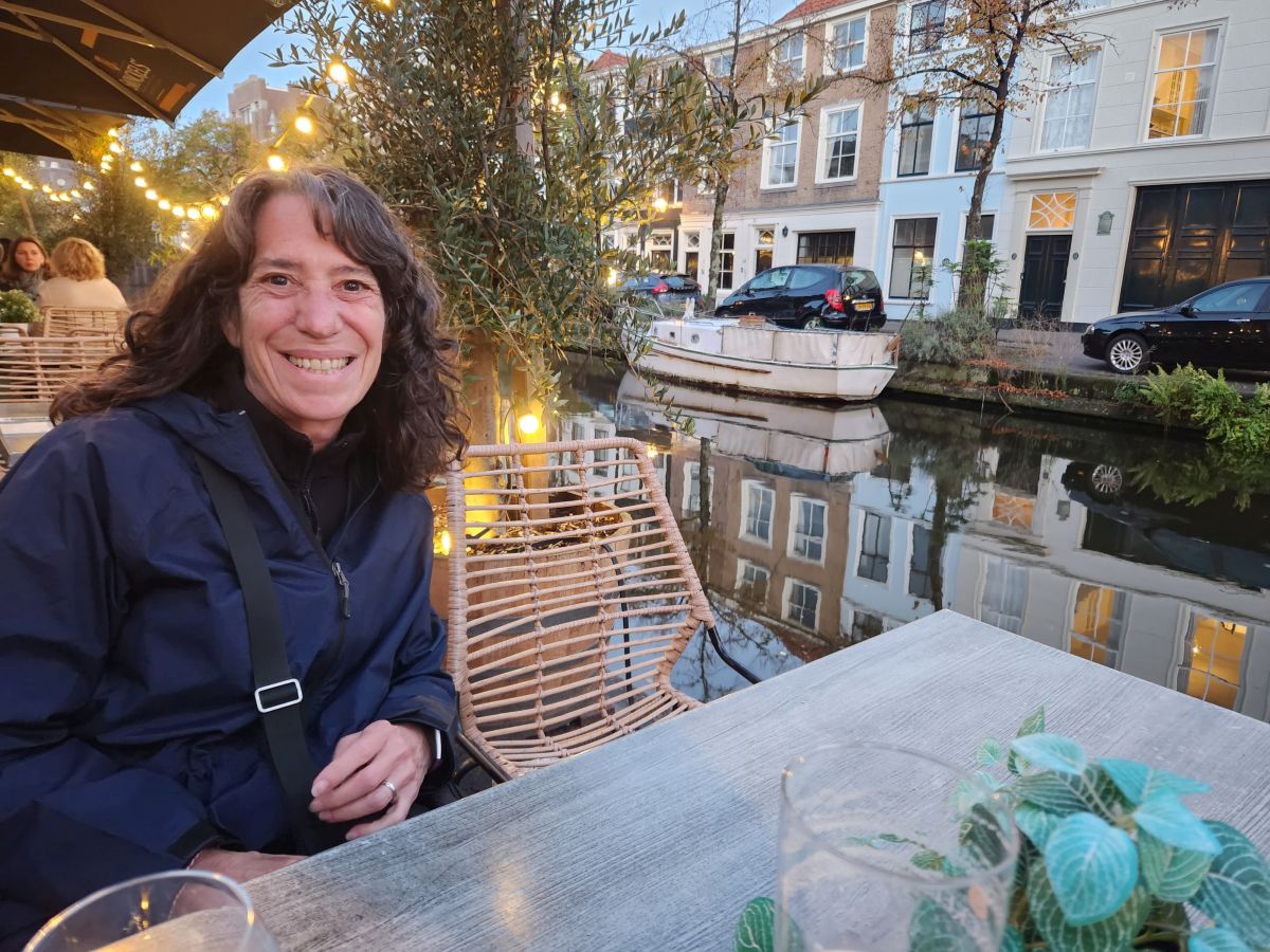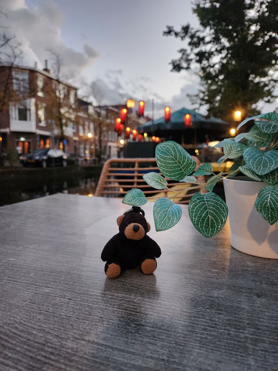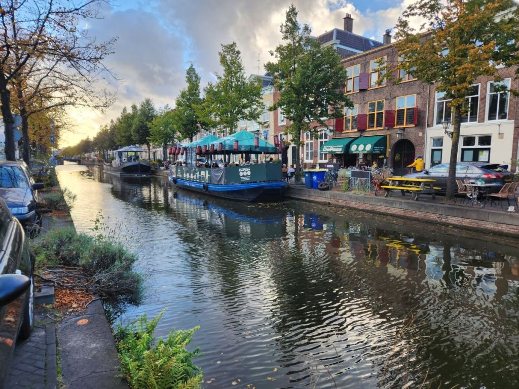 Twelve minutes later we are deposited in Den Haag. Easy Peasy. An easy 10 minute walk into the historic section, along the Bierkade canal, we find the appointed cafe, De Pakschuit, where we need to pick up our keys from Corine, the owner (our hosts won’t be home until late today, so Corine is our contact person). Corine is delightful, full of smiles and energy, taking us outside to show us the apartment across the canal. So lovely. And then we troop across the bridge to our home for the next 4 days, which turns out to be even more adorable than the photos!
