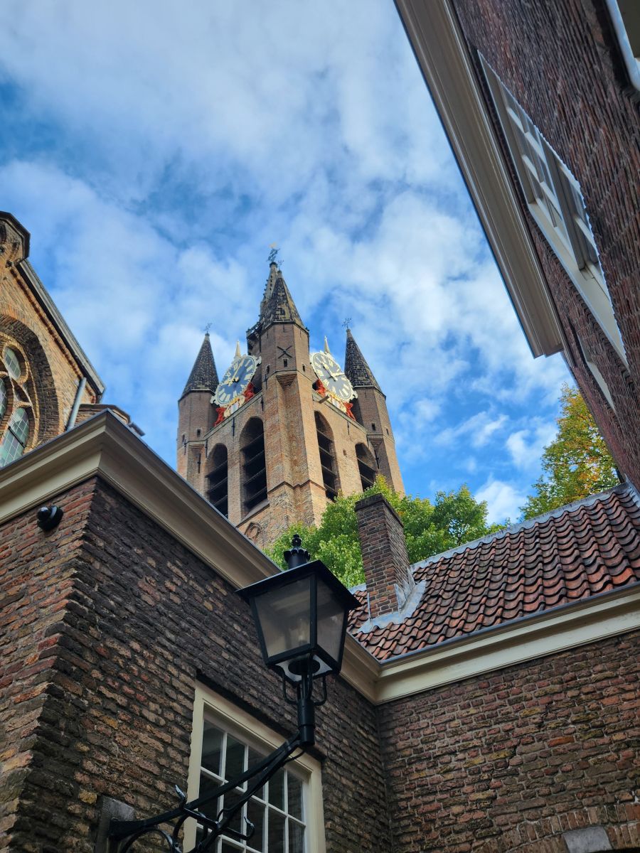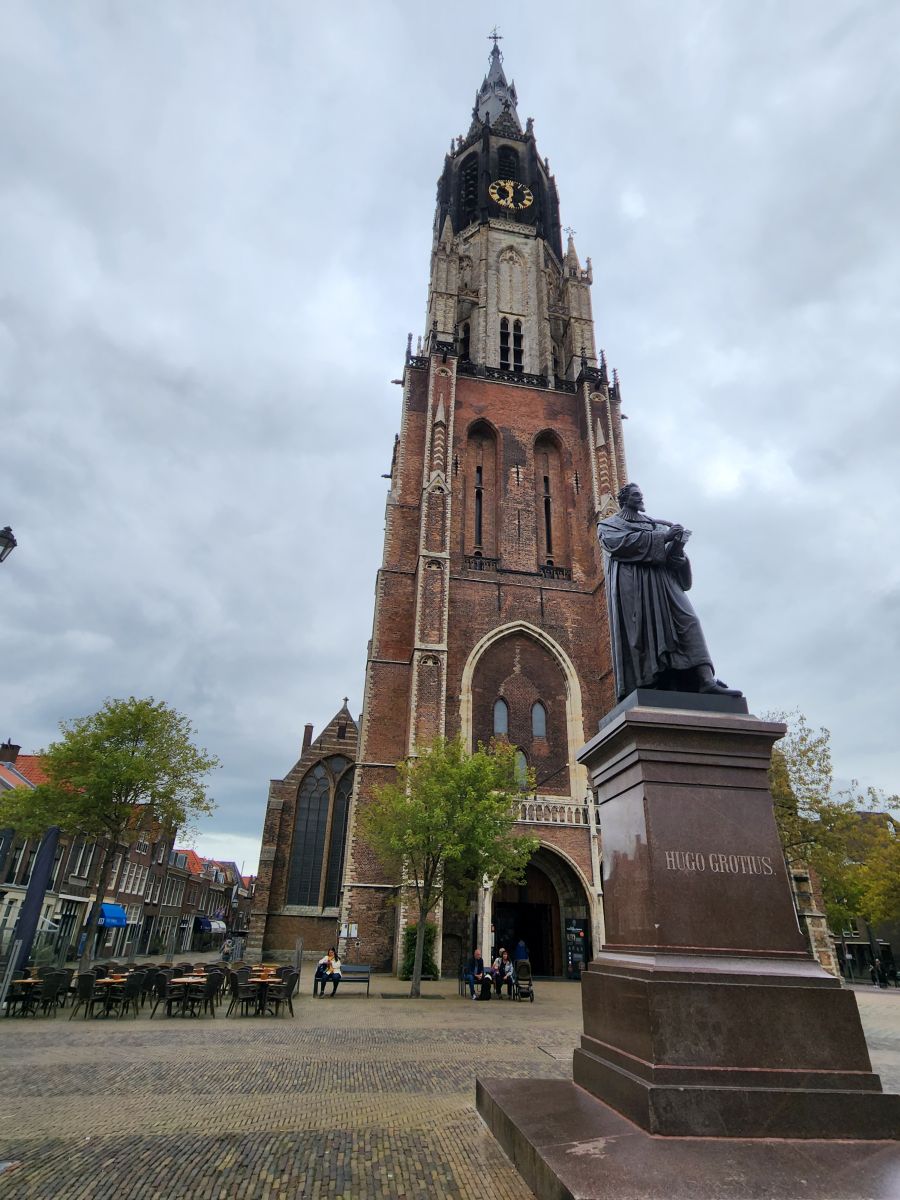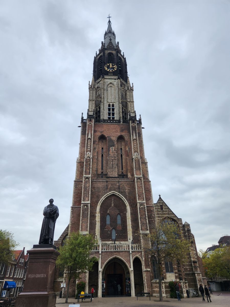 The tram ride is (see above!!) easy and quick, depositing us right outside the old town center of Delft. Again, the architecture is just stunning, that old Dutch Gothic look. Even from outside the old town proper, you can see the Oude Kerk – Old Church – clock tower and spire looming over you as you enter the narrow little lanes leading you across the canal to reach the church.