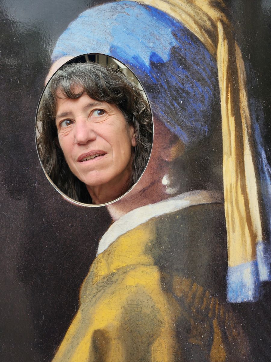 There are even some fun interactive areas where you can be in the painting, like the one with table and window and light behind it, or the Girl with the Pearl Earring cut out in front of the building. Also a really cool photographic montage interpretation of the Girl in today’s world. Very worthwhile visit.