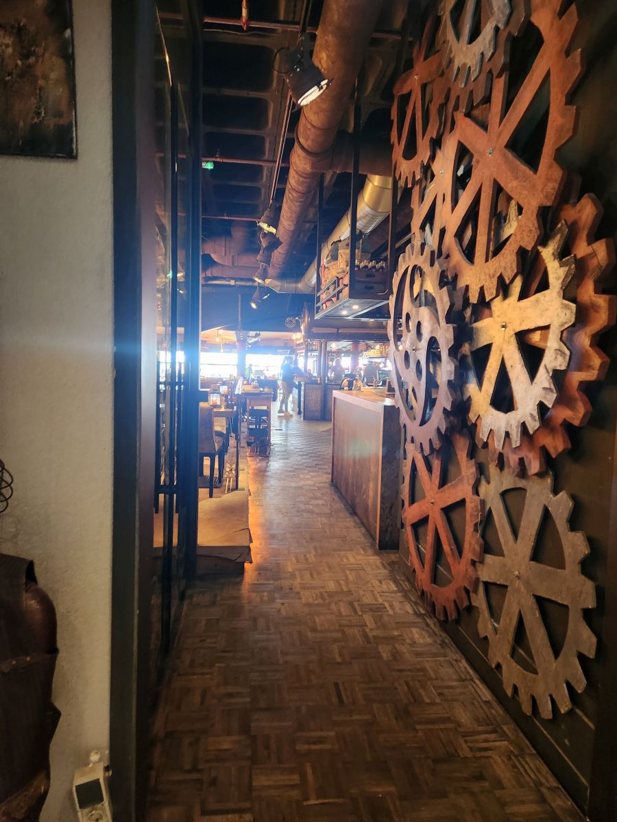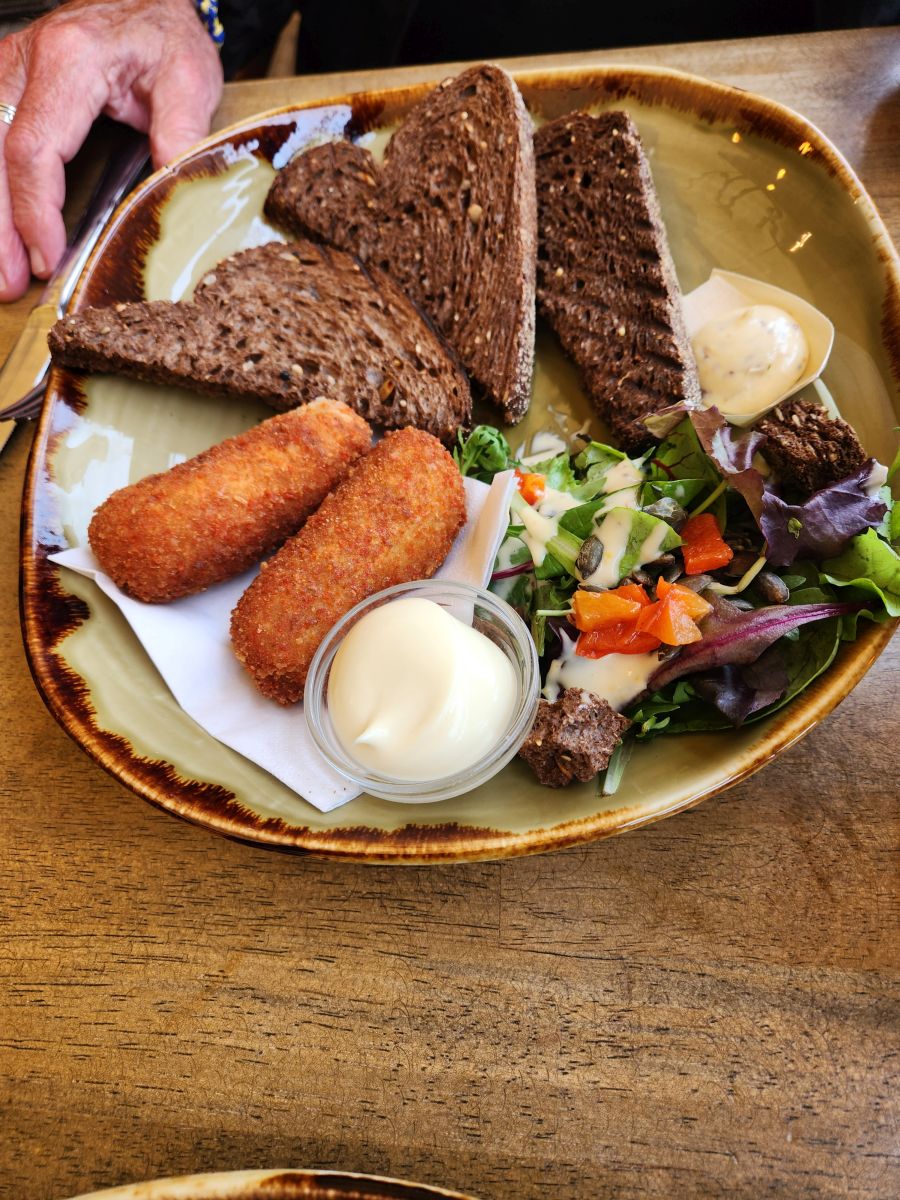It is nigh upon lunch time, actually, for us, it is way past, so we begin our hunt for a restaurant. We find a solution at Steam, a great bar and restaurant with a Victorian area theme that focuses on, yes, you guessed it Steam technology. It is a lovely place to sit inside by the open front window overlooking the patio, but protected from the wind, and dig into some excellent fish and chips and a nice small plate of brown bread and shrimp croquettes. A perfect later afternoon meal for us.