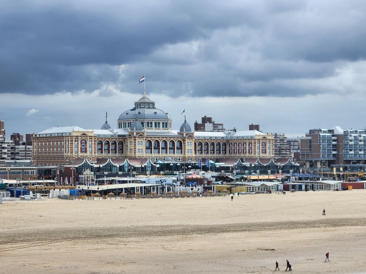 Scheveningen is as promised, this huge wide beach with a seaside promenade running alongside it and a fabulous old elegant hotel, the Kurhaus, built in 1885 and frequented by the wealthy and well to do who wanted to take in the healing properties of the sea water and air. On the beach, however, as it is winter here, well, at least late Fall, there are no beachfront activities going on. As a matter of fact there are workers tearing down and closing up the beachfront restaurants.