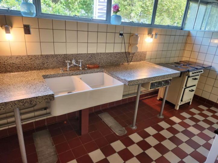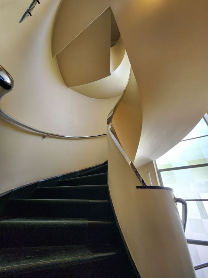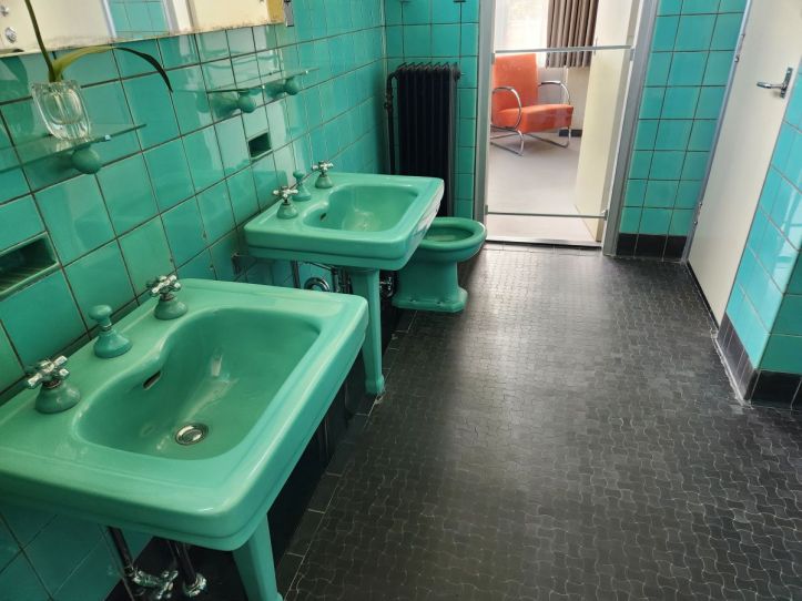 Included in the price of our New Institute ticket was admittance to the Huis Sonneveld house, one of the best preserved houses in the Nieuwe Bouwen style. This type of functional architecture was created in the early 1900s to provide residents with access to fresh air and a more healthy lifestyle. Incorporating concrete and steel construction, new for the era, was geared at providing a “hygienic” building and the open floor plans were created to enhance the airiness of the house. The Sonneveld house was built in 1933 and looks nothing like typical houses of that era. It is sort of space age in design, because of all that concrete and steel – but also very 50’s in decor (or mid-century decor as it is being branded today!). Every room had a color theme – from orange to yellow to that awful mint green. From the Sonneveld’s kitchen of red and yellow to the commercial/servants kitchen in basement, along the spiral staircase, through both the daughters’ bedrooms of contrasting colors and the living areas, this place was amazingly modern and super fun to explore. It was hard to believe that the building and the furnishings were almost 100 years old – from both a preservation and a design perspective!