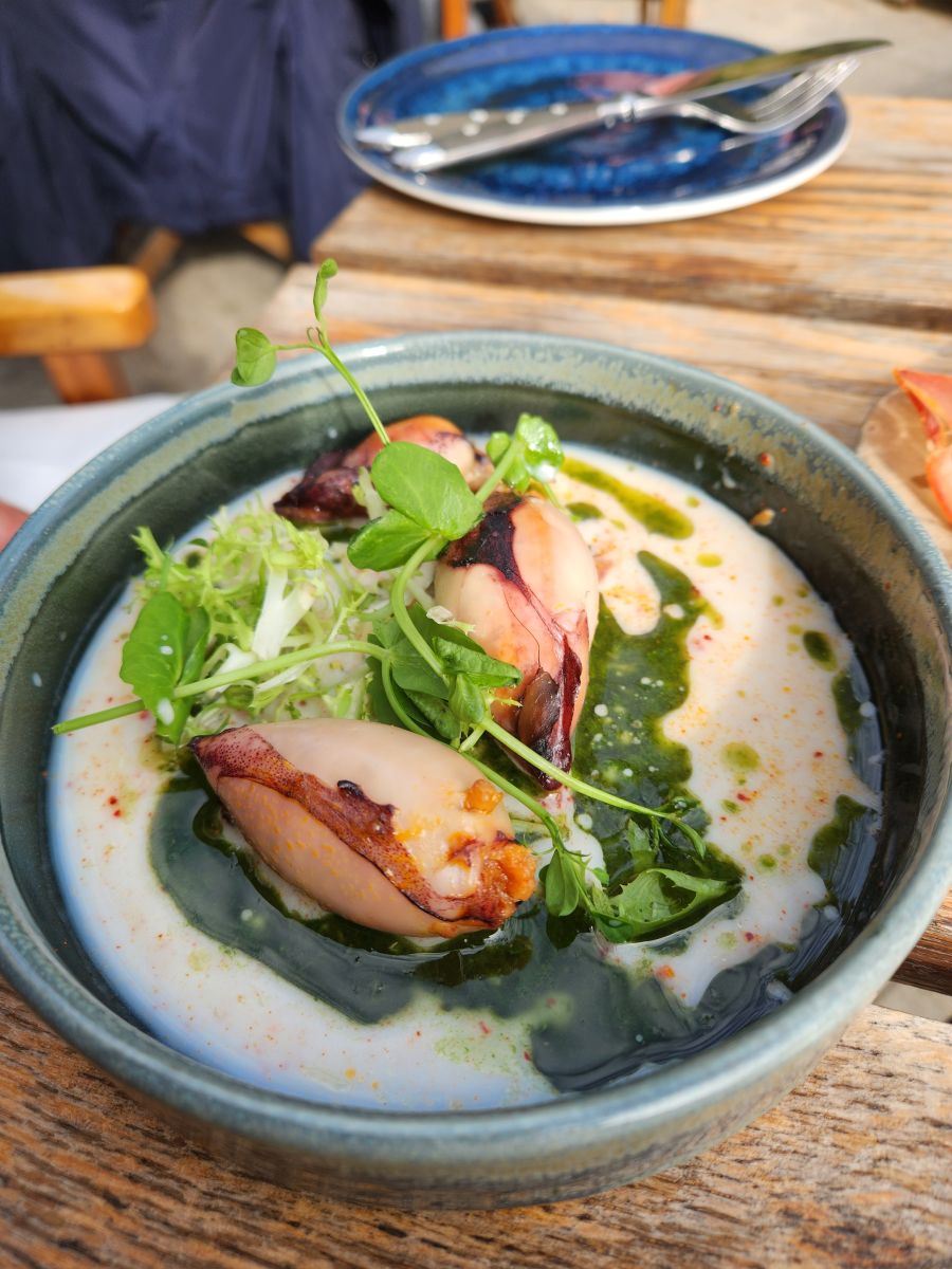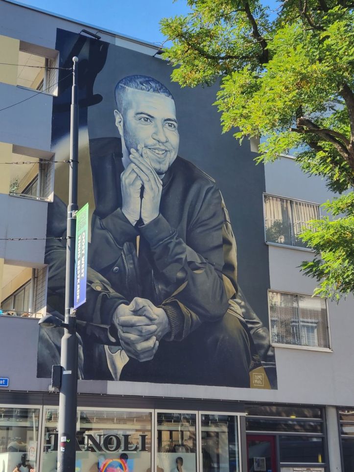 Now it is time for lunch. We nixed going further into the park to explore, even though it looks like there are some pretty gardens, fearing we would be too far afield from any restaurants. Instead we headed out of the park and up into the city aiming toward the train station and what was called (at least on our Google maps) the “Rotterdam Street Art Museum.” Along the way we find Ayla, a restaurant that bills itself as “shared food.” Tapas! Netherlands style. Situated right on the corner of the street we need to walk down for he street art, Ayla is the perfect place for us to hang out in the sun and have a great meal of stuffed squid and charcuterie. Feel like we are back in Spain!