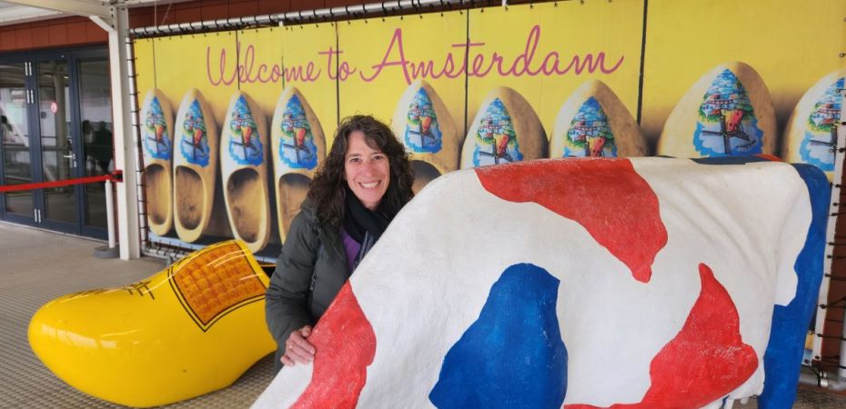 The day dawns brightly, making us very happy as we have a trek to and from both train stations today. We’ve been very lucky with the weather so far, and it seems to be holding for us today. After a quick breakfast, final organizing and tidying up the apartment, we hit the streets, dropping the keys in the mail slot for Dino and Marjan, then hauling the bags to the train station. We are early enough that we can sit and have a cappuccino (or cafe latte as the case may be) before hopping on our 10:30 train. Once again Renfe app to the rescue – everything is on the phone and so simple – we are aboard, luggage stored and on our way for the one hour trip to Amsterdam.