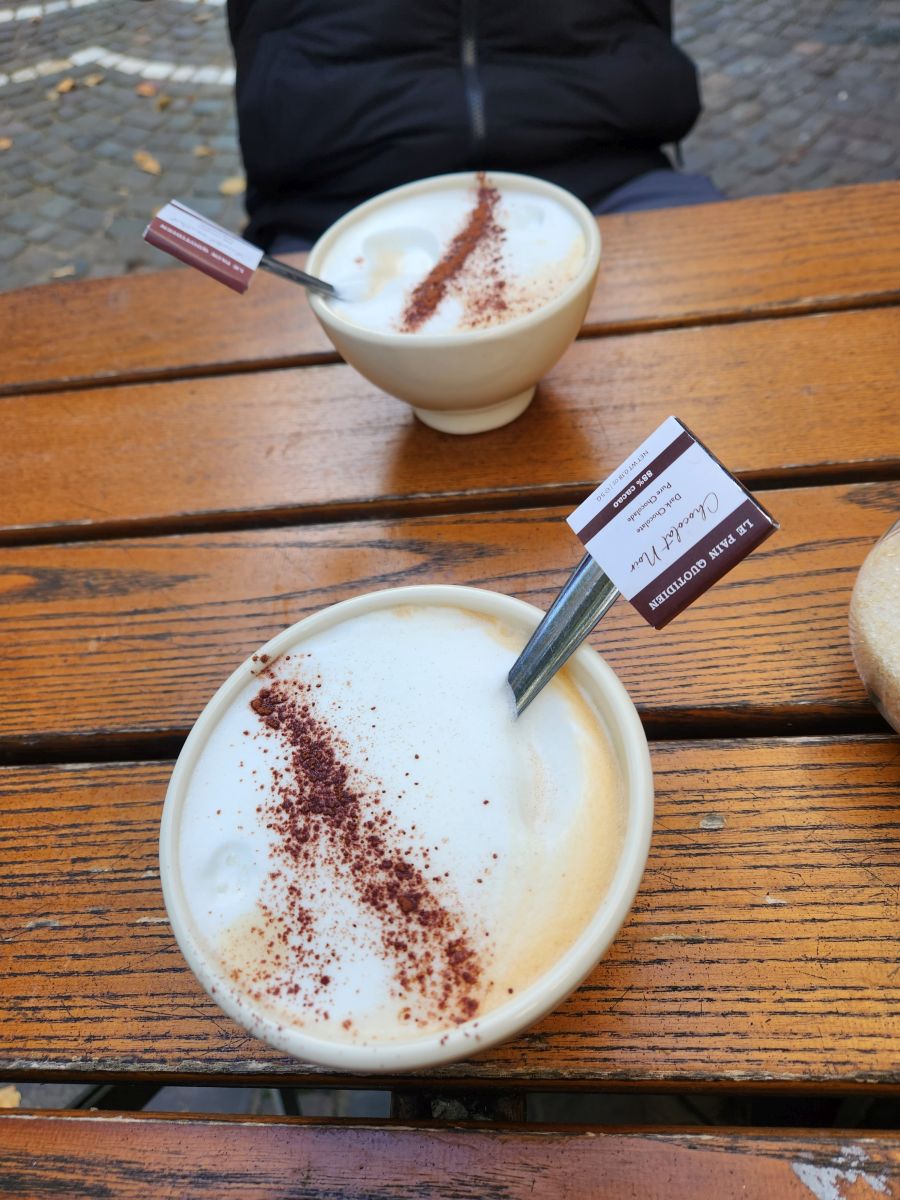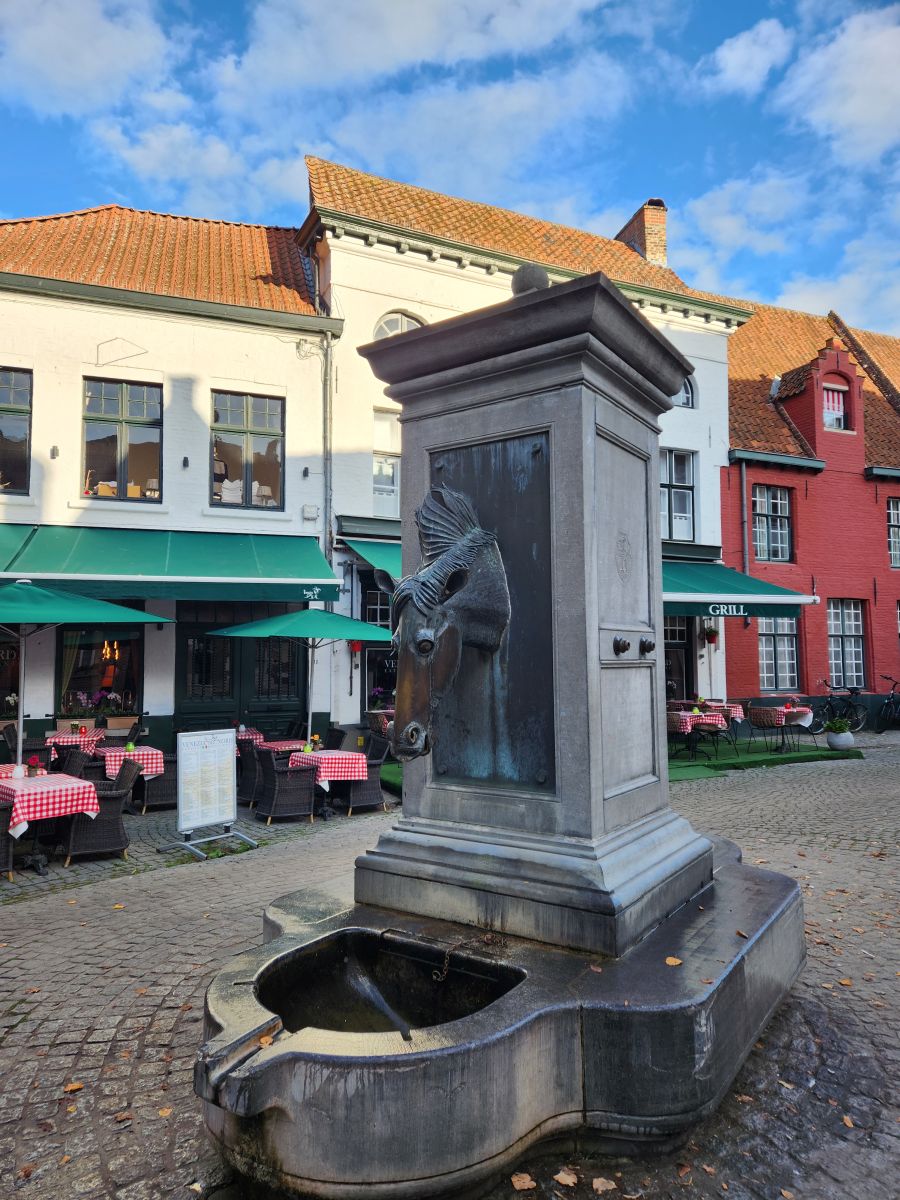 We pass the swans and the Begijnhof castle, as well as the cool horse head drinking fountain, winding our way across canals, past the cathedral, through the oh so scenic town before finding ourselves (as always) on Simon Stevinplein, the square where we have eaten many times and now stop for a cappuccino to warm us up. (Simon Stevinplein is sort of like Placa Reial in Barcelona, we always seem to end up there!)