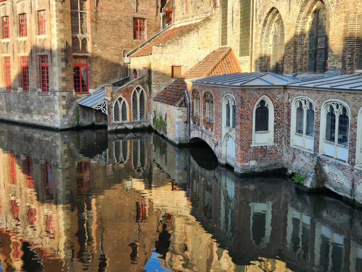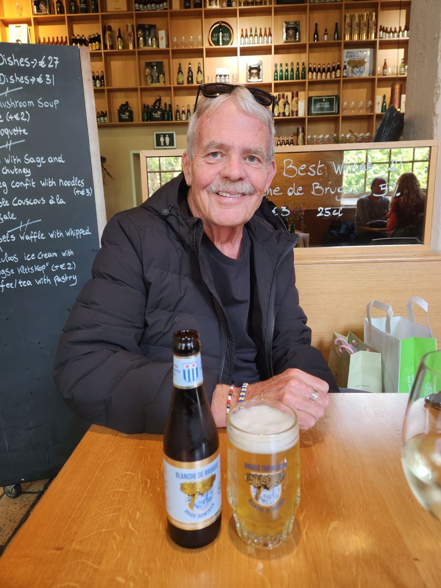 It is a glorious morning as we dock in Zeebrugge. No storm here, although we can tell it definitely passed through from the water everywhere. We have managed to rearrange our shuttle bus into Bruges for today. Obviously not much the shuttle company can do if the ship doesn’t come in. Making our way over to the meeting point, we are (surprise!) the first people here and begin to engage in a wonderfully funny and great conversation with Mark, one of the “hucksters” for the shuttle. That guy. He was hysterical, and took a liking to Ed, who he kept calling the expert on Bruge and telling everyone who came up to talk to Ed. It was priceless. The bus didn’t leave for a while (it was late, but all times are suspect here as Mark makes sure we know), so we have plenty of time for banter. Total entertainment!