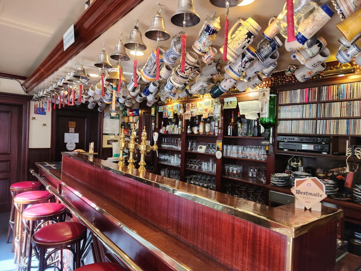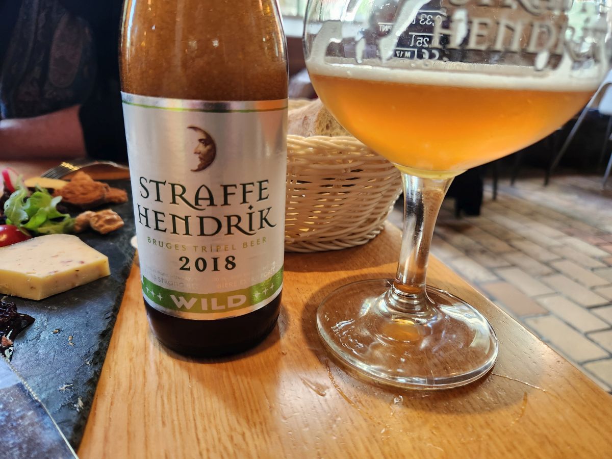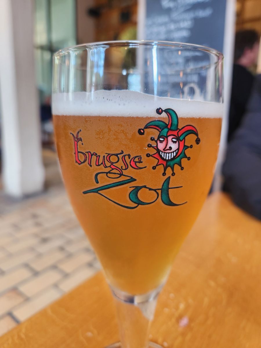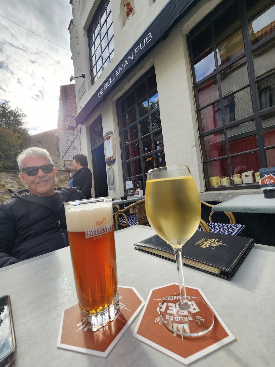 Touring complete, now we’re just wandering. Meandering through the lanes and canals, snapping pictures of the Bell Tower we have climbed on previous visits and the different architectural features that make Bruges such a lovely city. It is too early to eat yet, and we don’t want to just walk around aimlessly, when we spy a cute little bar called De Belleman Pub. The owner is a lovely lady who may or may not speak English, but is very welcoming and friendly in any language! We have a wonderful time enjoying the sunshine and listening to her chat with some other patrons – obviously locals.