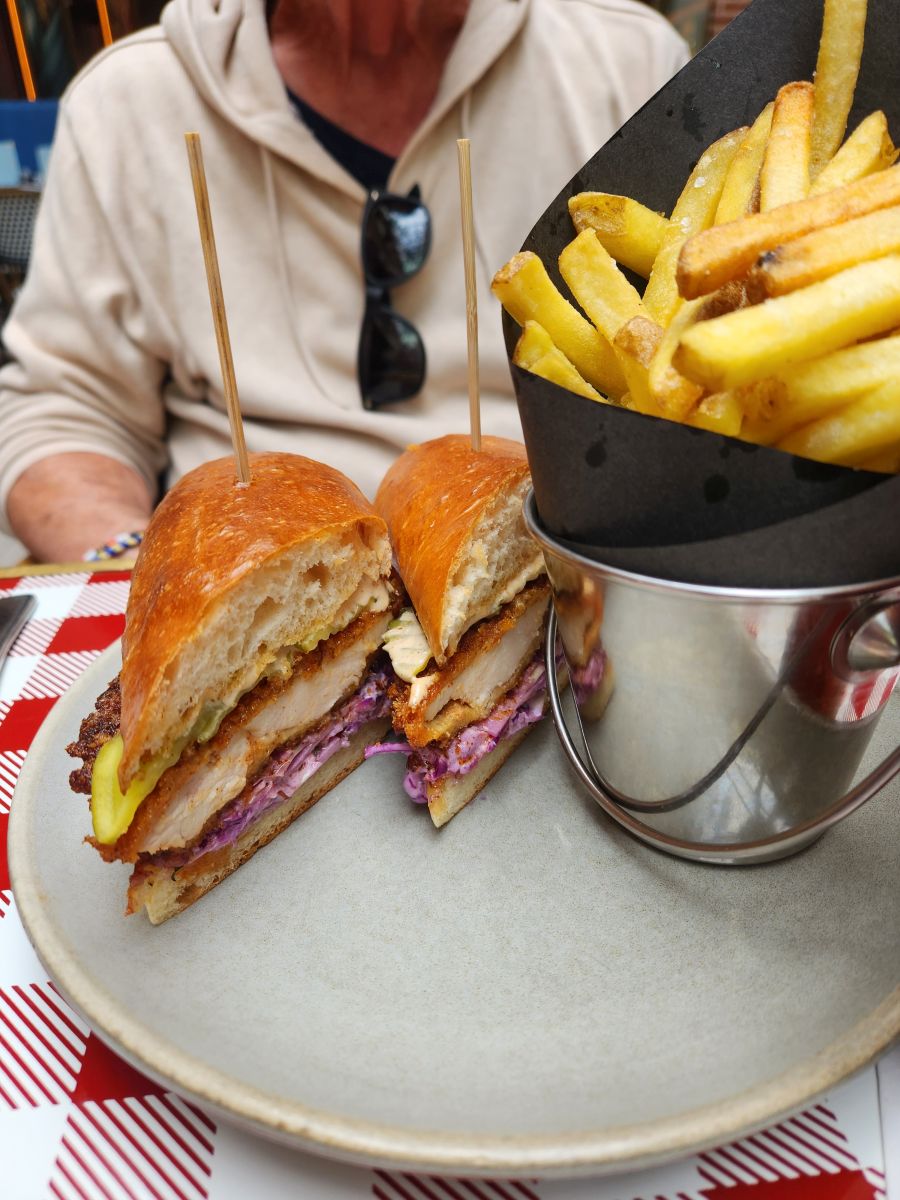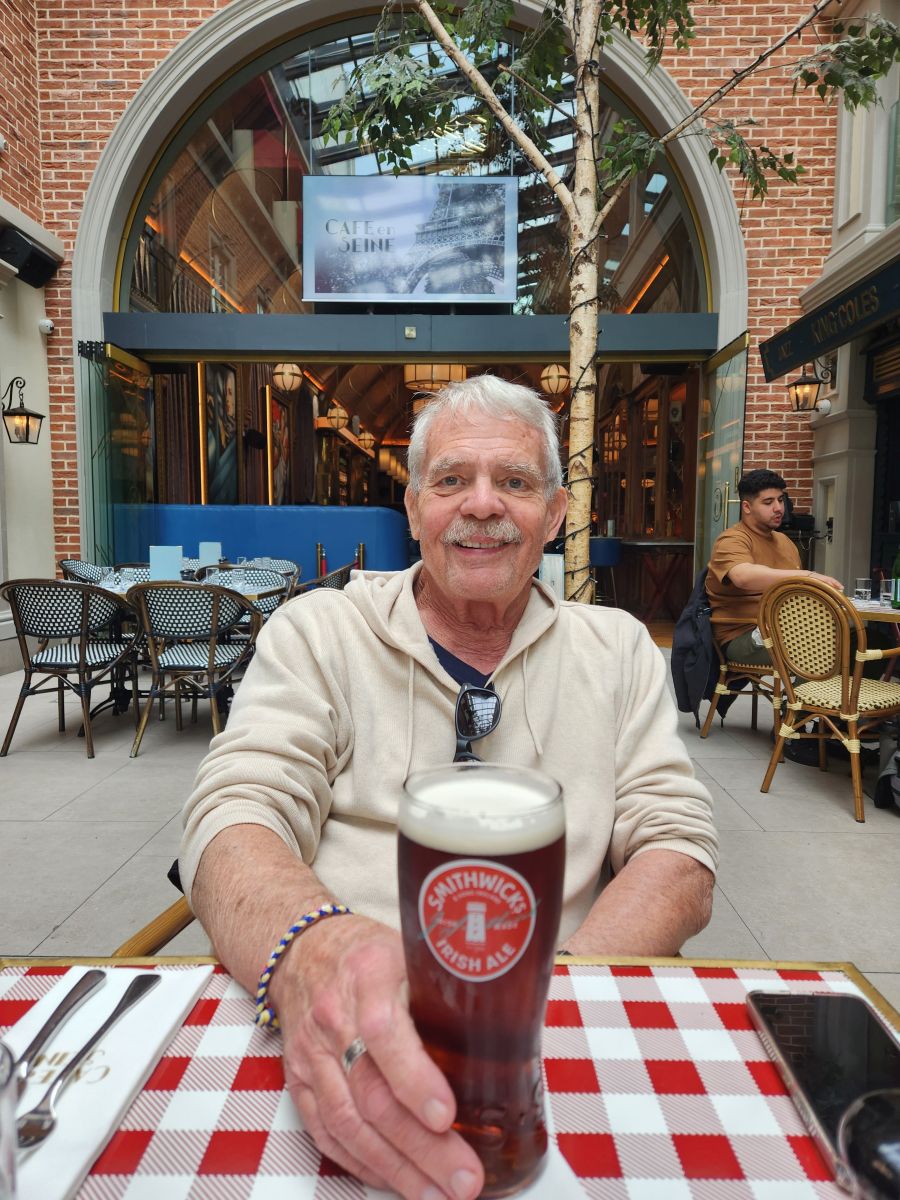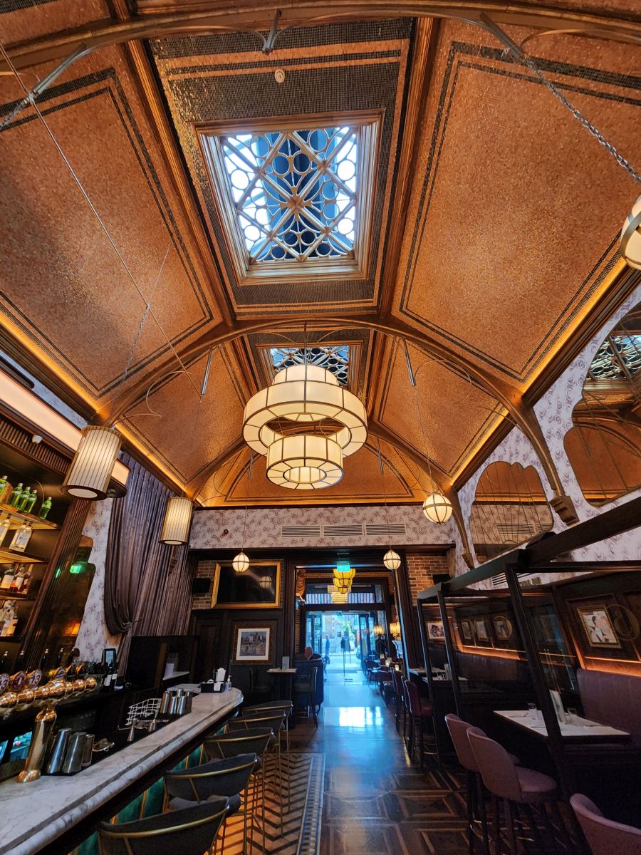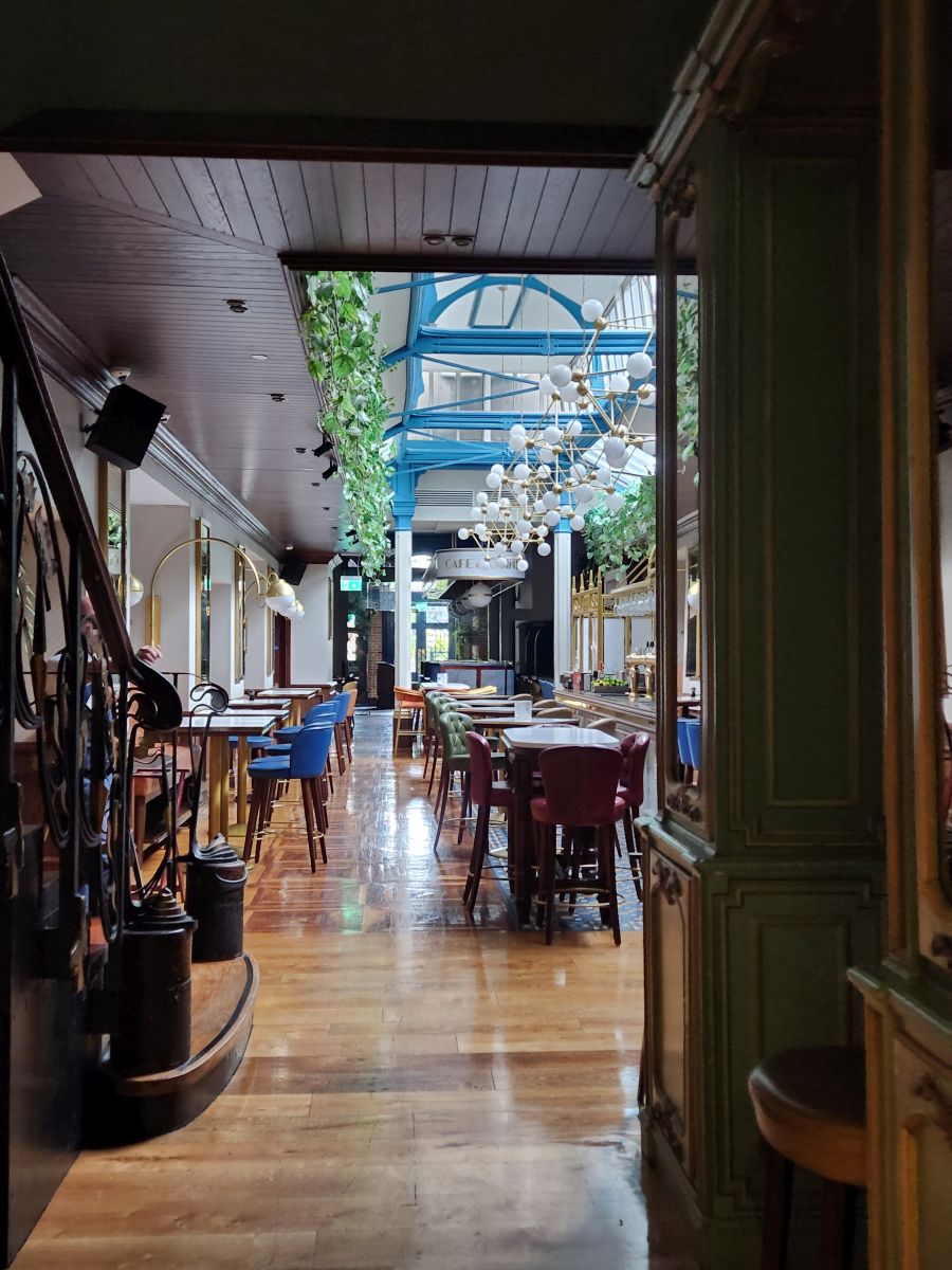We’re so glad we finally made it here – well worth the visit (and the angst of that stupid tendering process!). Seeing as it is so late, we are now off in search of lunch. We’re in the right area, everything from St. Stephen’s green up to the to Temple Bar is filled with restaurants, shops and cafes. We don’t get very far before we decide on the Cafe on the Seine. Yeah, we know, French? But the menu looks good, and oh my gosh! The interior is over the top! You walk through a very French restaurant looking area with plush leather booths and long bar, then out into a bright open atrium that is decorated like a street cafe in Paris! There are even upstairs rooms and more bars. It is fabulous, and while not very busy at this point in the day, we can imagine how it must be a hopping place at night! Settling into to our little cafe table, we tuck into a delicious Turkey Rueben and a Nashville Chicken sandwich. See? French menu this is not!