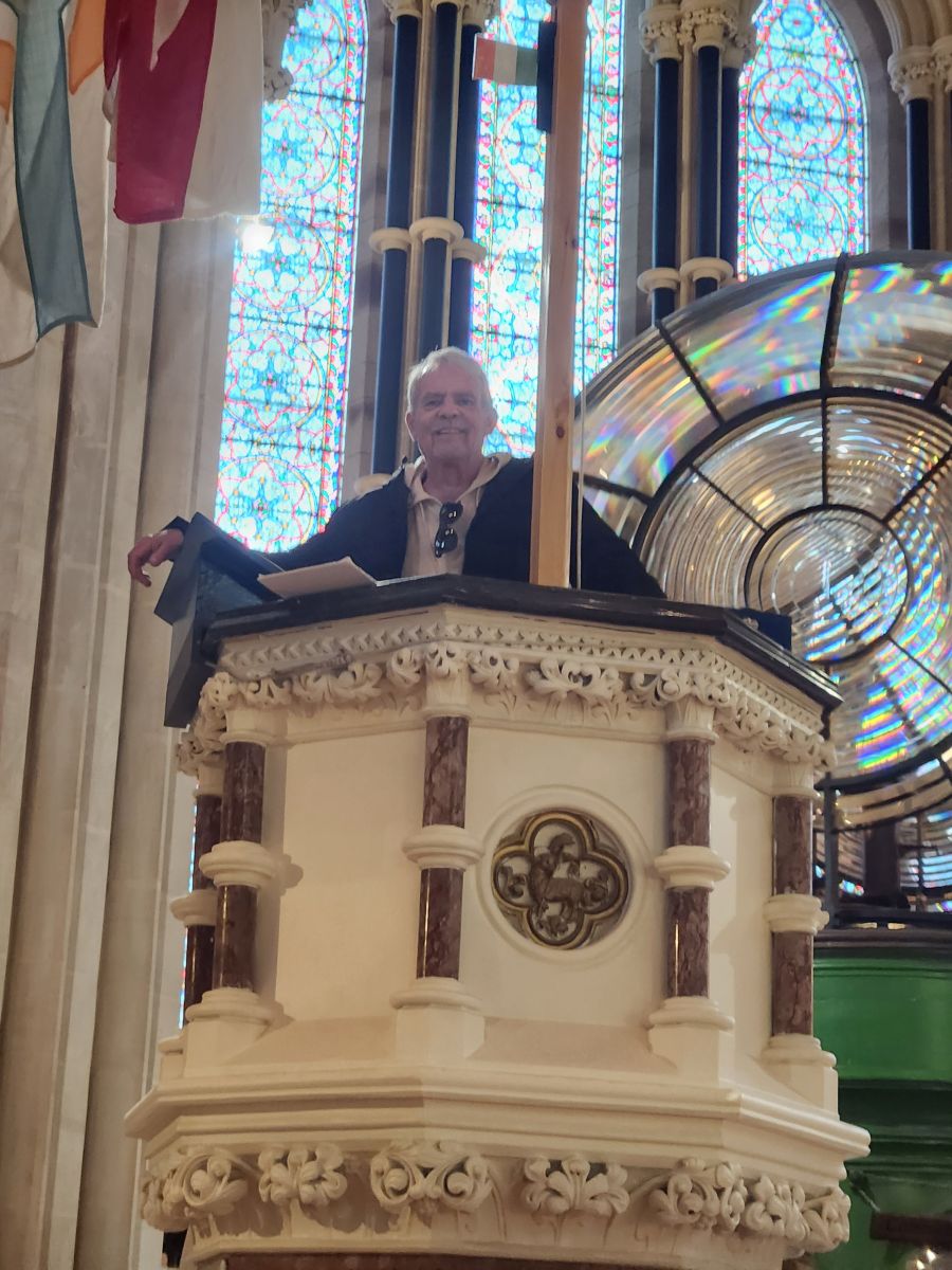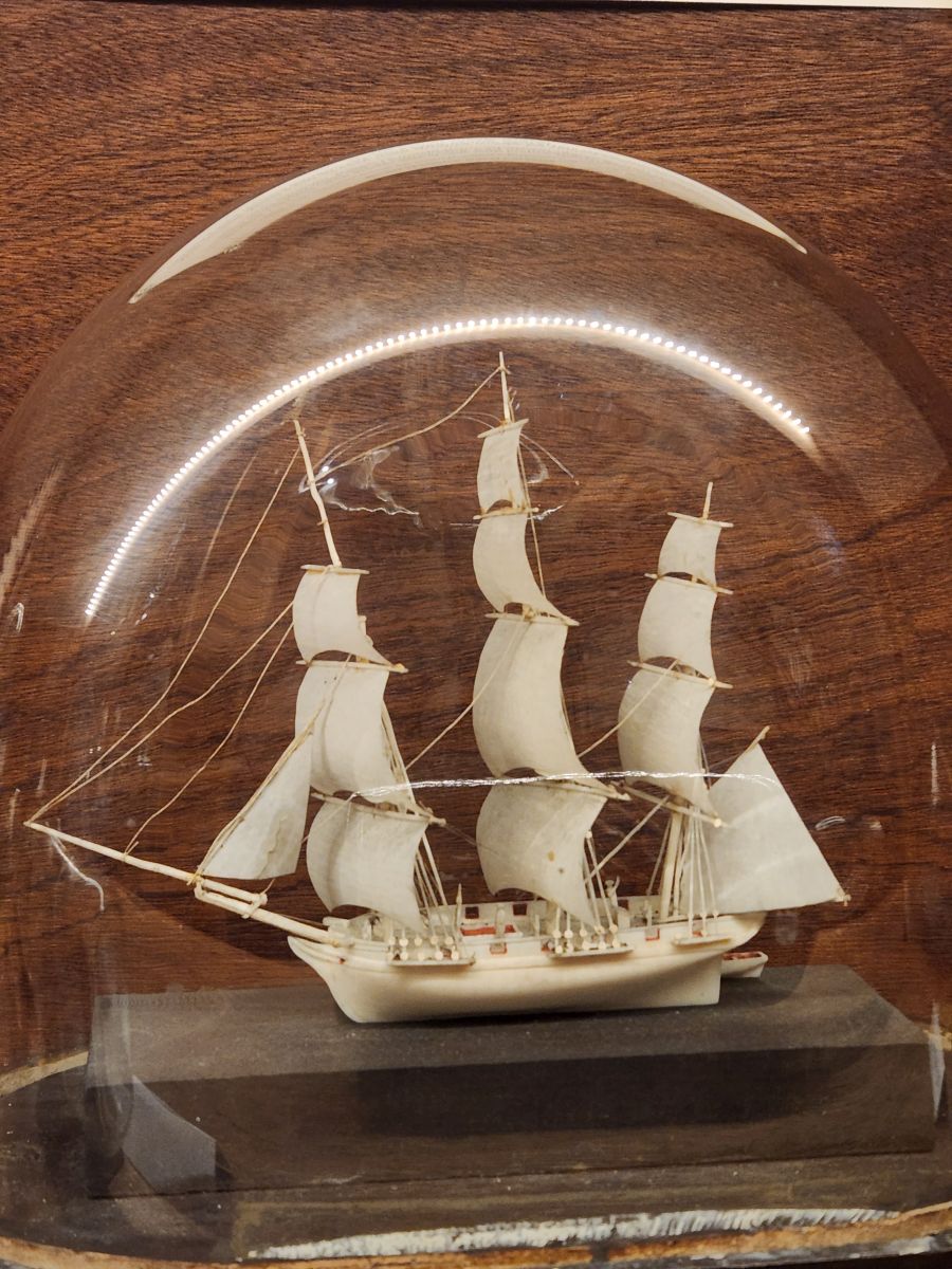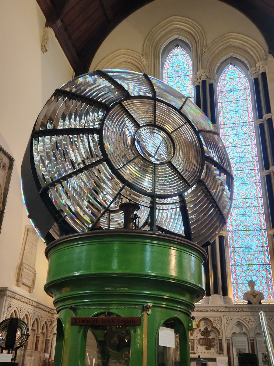 There are lots of cool displays in here. Lights from the Baily Lighthouse, lifeboats, interesting history on the role of U-boats in the sinking of the RMS Leicester, one of the last acts of the WWI, the original pulpit which Ed makes good use of and a model ship made out of bone – that the docent made sure to tell us to see!