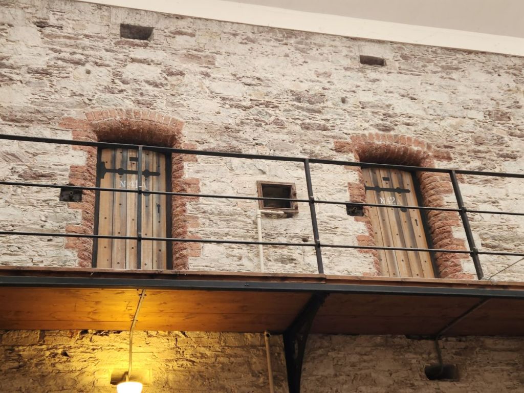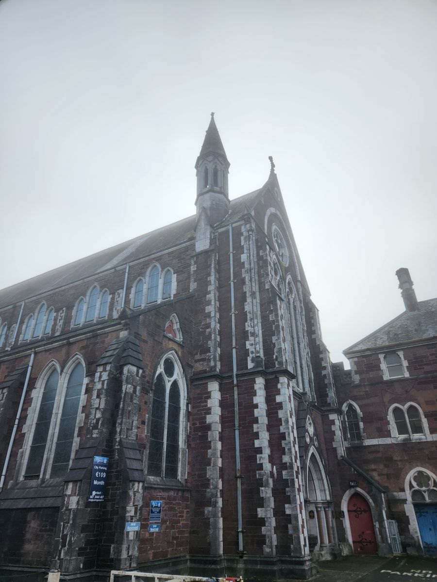 Today is another Gaol tour day, but, as usual, we are far too early for the opening hours, even if it is a half an hour plus walk there. Meaning, it is time for a cappuccino! A little coffee shop called 5 Points beckons, and we fortify ourselves with caffeine before heading out into the cold still somewhat foggy morning for our walk through to the Cork City Gaol at the other end of town. The walk takes us along the river Lee and then turns uphill on narrow one way streets. We pass by St. Vincent’s Church which sits stoically alongside the road, with the really creepy priest statue in the car park. He’s glowering down on us, pointing at something, and even though we’re pretty sure it is just rust on his forehead, it looks like he’s been beaten and bleeding from his head. In the fog. Eek.